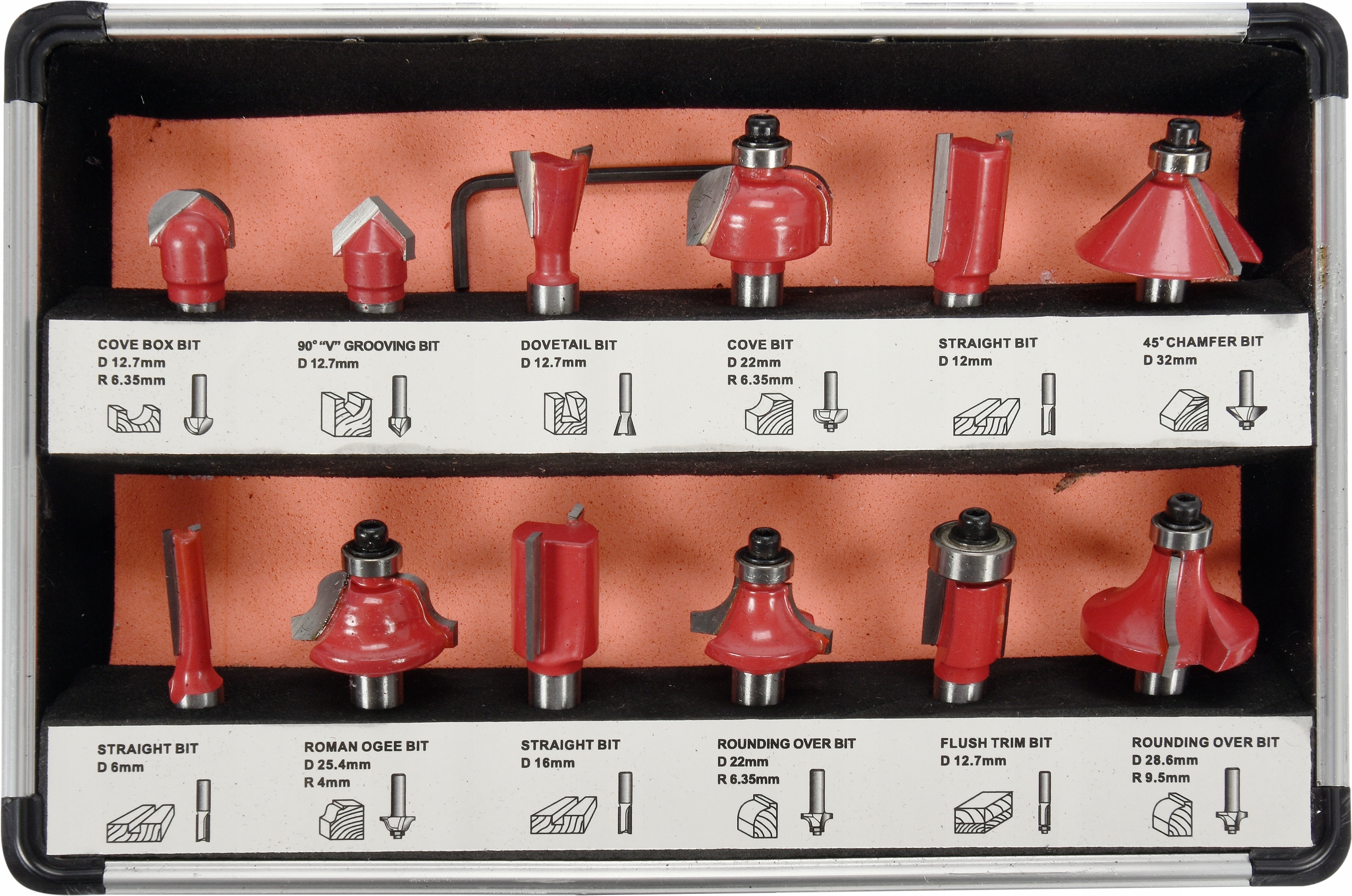 Zestaw 12 frezów trzpieniowych do obróbki drewna YATO.