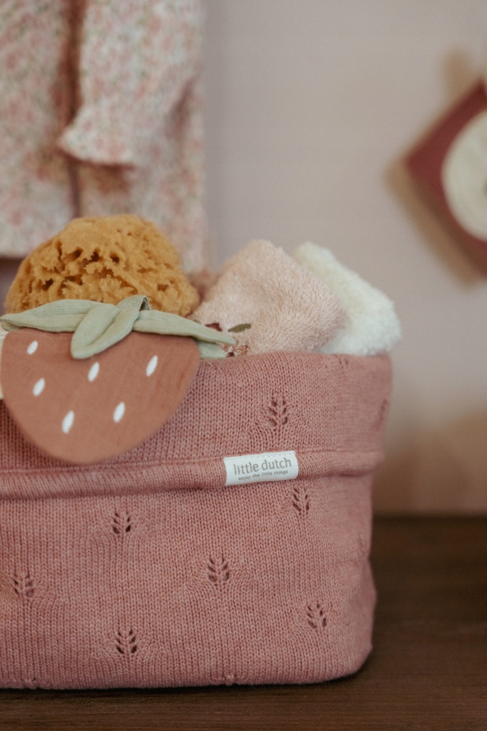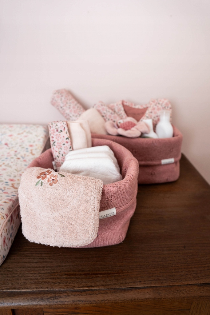 Koszyk o pięknym, plecionym wykończeniu wykonany jest z mocnego materiału bawełnianego. Użyjesz go do przejrzystego przechowywania wszystkiego, co musisz mieć pod ręką podczas codziennej pielęgnacji swojego dziecka. Krawędź podwijająca pozwala na dostosowanie wysokości koszyka do własnych potrzeb. Koszyk będzie jednocześnie pięknym dodatkiem na przewijaku lub półce w pokoju dziecięcym.Skład: 100% bawełna organiczna, wewnątrz 100% bawełna z powłoką LDPEWymiary: 25 x 15 x 15 cm