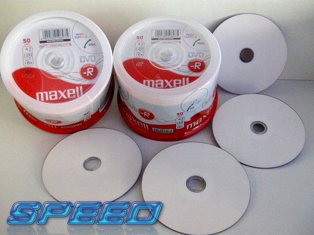 Płyty MAXELL DVD-R można nadrukować w drukarkach atramentowych przeznaczonych do tego celu lub posiadających opcję nadruku na płytach optycznych.