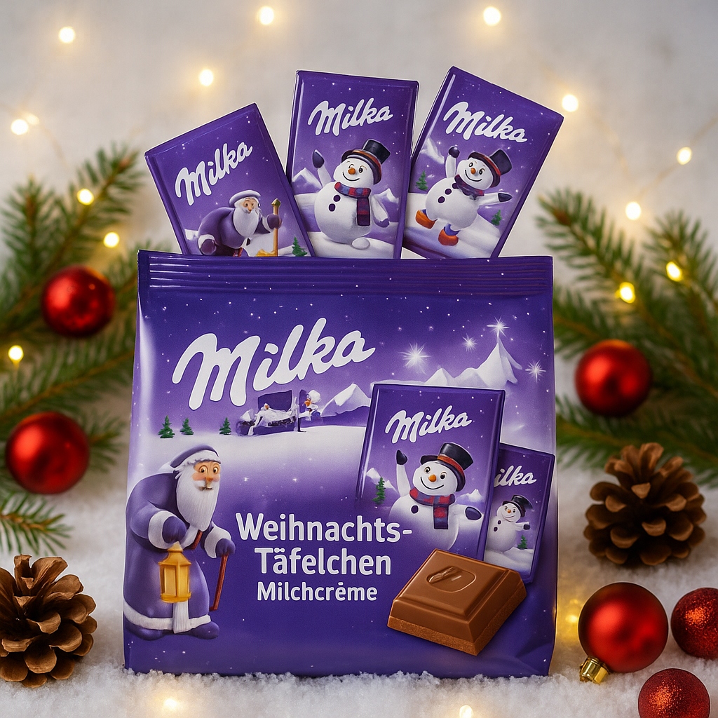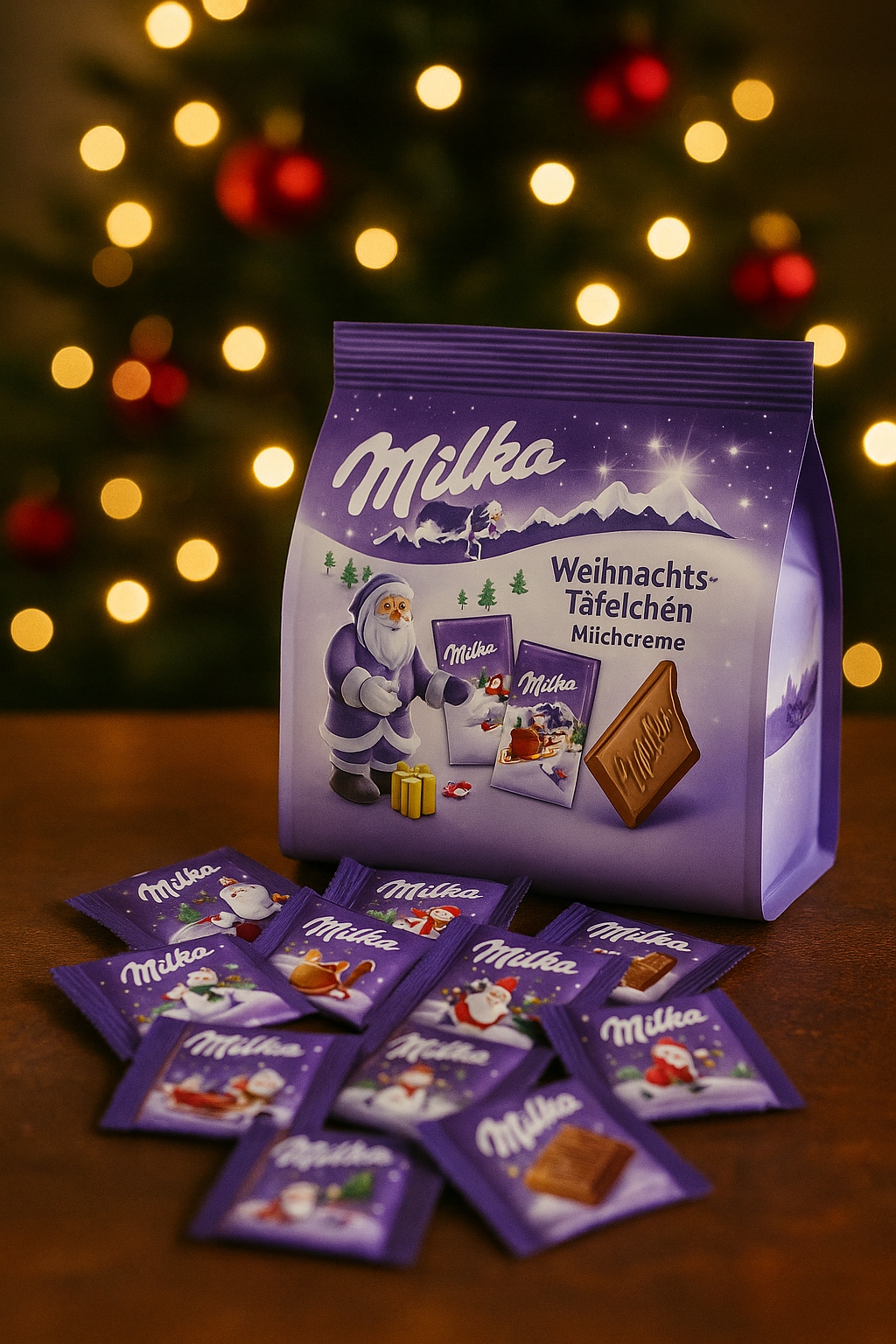 ➡️ Zimowe opakowanie dodaje klimatu i sprawia, że Milka idealnie pasuje do świątecznej atmosfery.