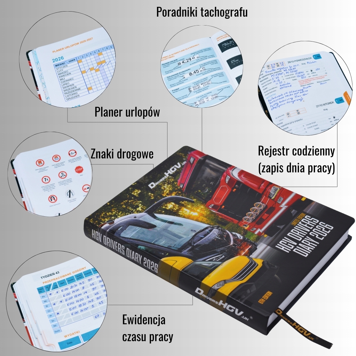 Zawiera też sekcję dostosowaną do czasu pracy kierowców zawodowych.