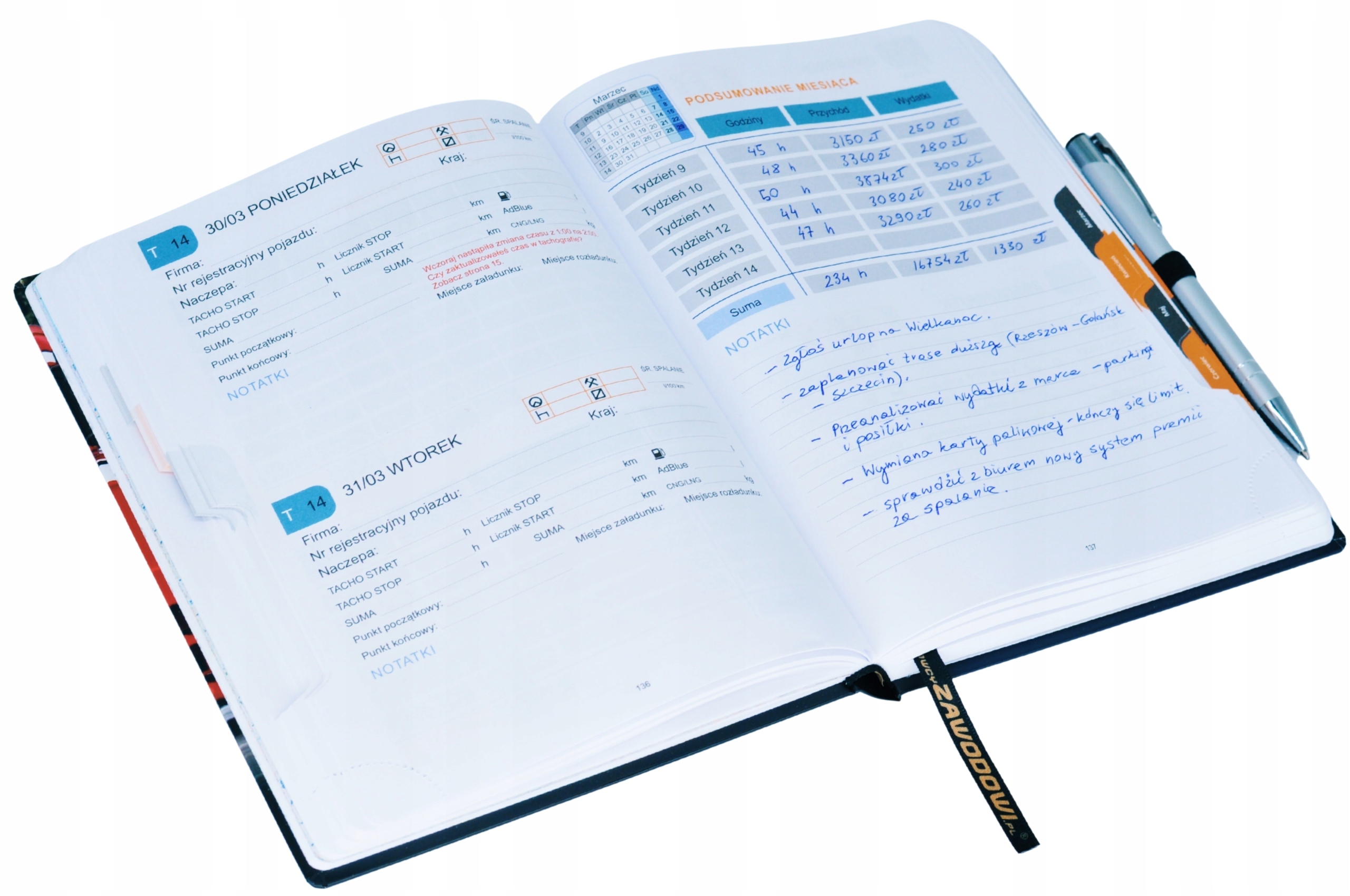 Praktyczny dziennik i planer pracy kierowcy ciężarówki, autobusu lub busa.