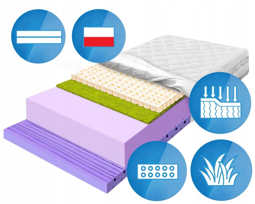 Połączenie lateksu z trawą morską w jednym materacu to wyjątkowa kombinacja, która dostarcza komfortowego i jednocześnie stabilnego podparcia podczas snu. Lateks odpowiada za elastyczność i przyjemne dopasowanie do kształtu ciała, natomiast trawa morska nieco usztywnia całą konstrukcję, nadając jej charakter sprężysty, lecz twardszy. Taki układ świetnie sprawdza się u osób poszukujących stabilnego podłoża bez rezygnacji z wygody, a przy tym ceniących naturalne surowce i dobrą przewiewność materaca.