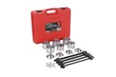 ⭐Zestaw do wciskania i wyciskania tulei KD12502 to profesjonalne narzędzie składające się z 28 elementów, dedykowane do efektywnego montażu oraz demontażu tulei w zakresie średnic od 34 do 82 mm.