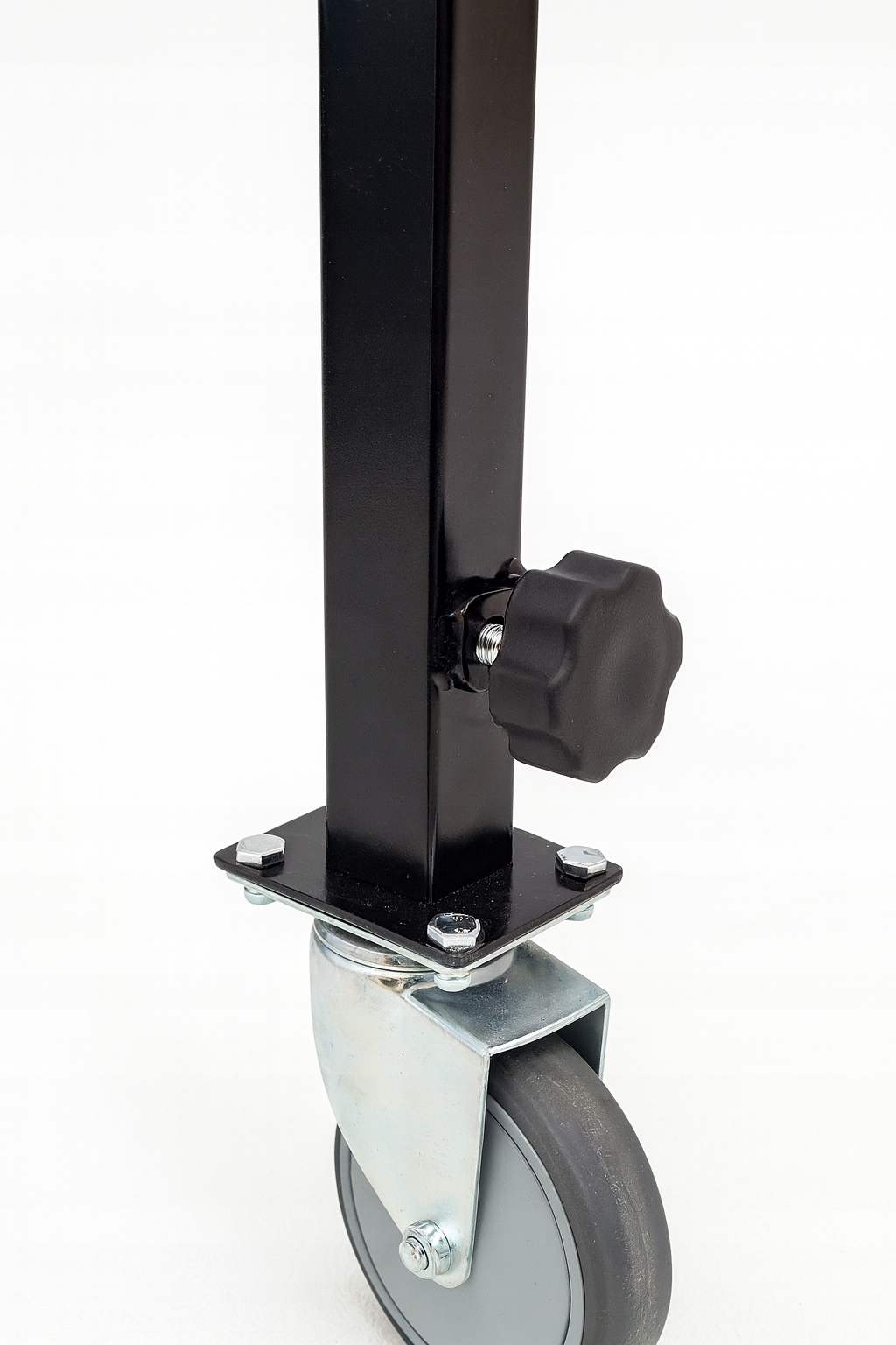 Na wyposażeniu komplet kółek regulowanych, dzięki czemu wysokość transportera można ustawić od 700 do 850 mm.