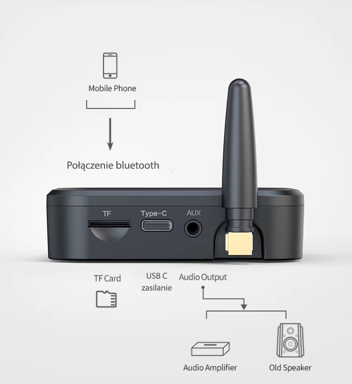 Zamiast wymieniać sprawny sprzęt na nowy, wystarczy podłączyć odbiornik Bluetooth, aby zyskać nowoczesną funkcjonalność bez kabli. Słuchaj ulubionej muzyki, podcastów czy rozmów telefonicznych z czystym dźwiękiem i pełną swobodą ruchu – bez plątaniny przewodów.