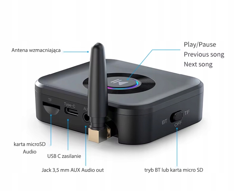 Urządzenie zasilane jest za pomocą nowoczesnego złącza USB-C, co zapewnia szybkie i stabilne działanie. Możesz je bez problemu podłączyć do komputera, wieży, laptopa, tabletu czy zestawu audio – wystarczy standardowe gniazdo USB o napięciu 5V.