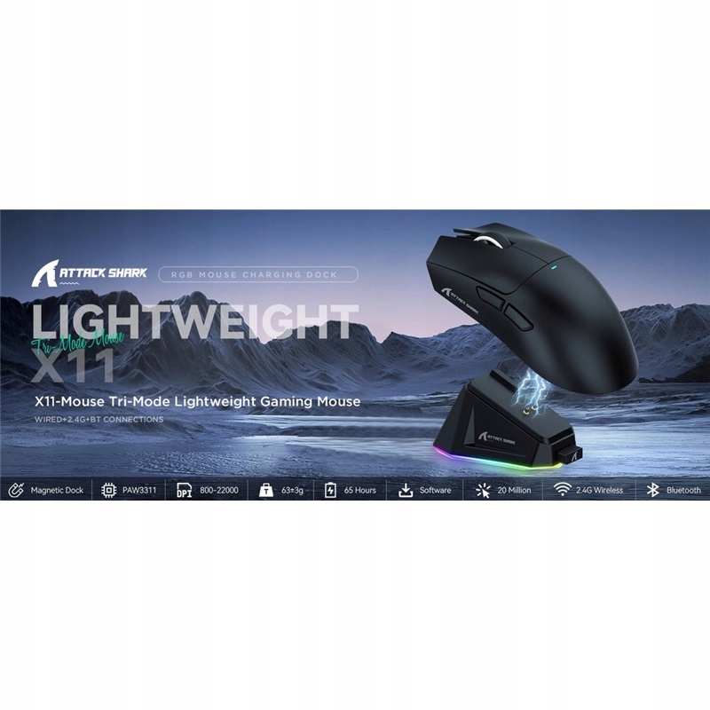 ⚡⚡ATTACK SHARK X11 Mysz Bluetooth/2.4G/przewodowa RGB z ładowarką ⚡⚡ magnetyczną