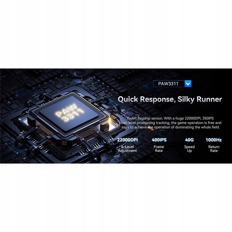 ✔️ Precyzyjna matryca PixArt 3311 - do 22 000 DPI zapewnia płynną i dokładną rozgrywkę oraz codzienne zadania.