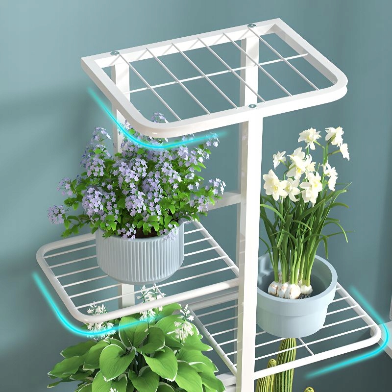 ✅ Łatwy w pielęgnacji – Gładka powierzchnia metalowego stojaka na kwiaty pozwala łatwo go utrzymać w czystości.