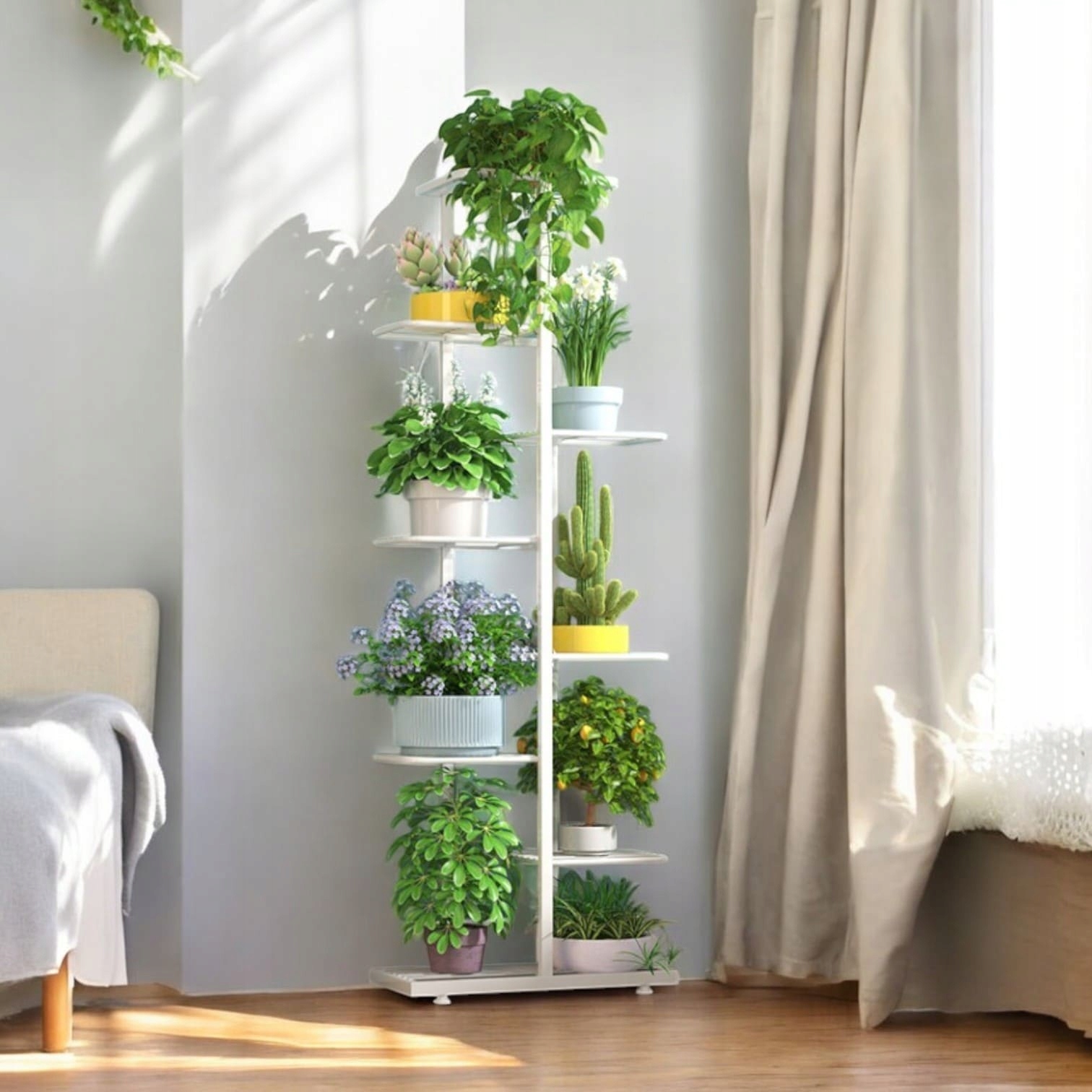 ✅ 8 poziomów dla Twoich roślin i dekoracji – Stworzony, by wyeksponować zarówno małe, jak i większe rośliny doniczkowe. Świetnie sprawdzi się również jako półka na ozdoby, zdjęcia czy inne elementy dekoracyjne.