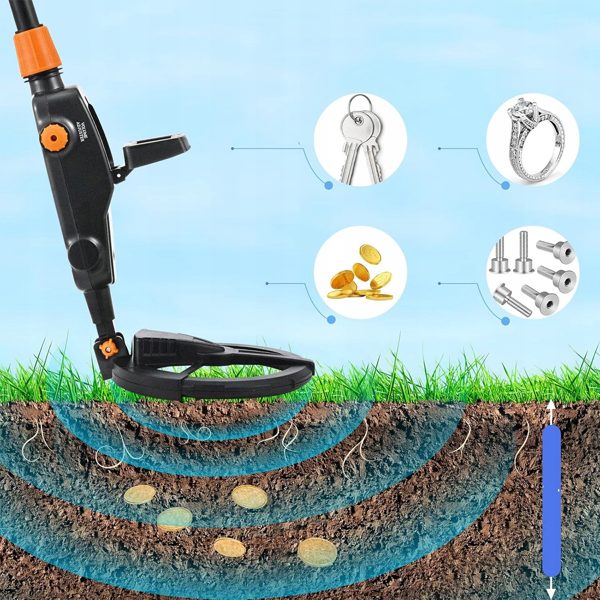 Ten zestaw z wykrywaczem metali to idealne narzędzie do poszukiwania skarbów! Poruszaj sondą wykrywacza metali na boki, powoli chodząc, utrzymując lekką sondę równolegle do podłoża. Czułość sondy można regulować, aby wykrywać obiekty na głębokości do 10 cm (4 cali). Idealny do wyszukiwania zgubionych kluczy lub biżuterii w śniegu, na plaży itp.