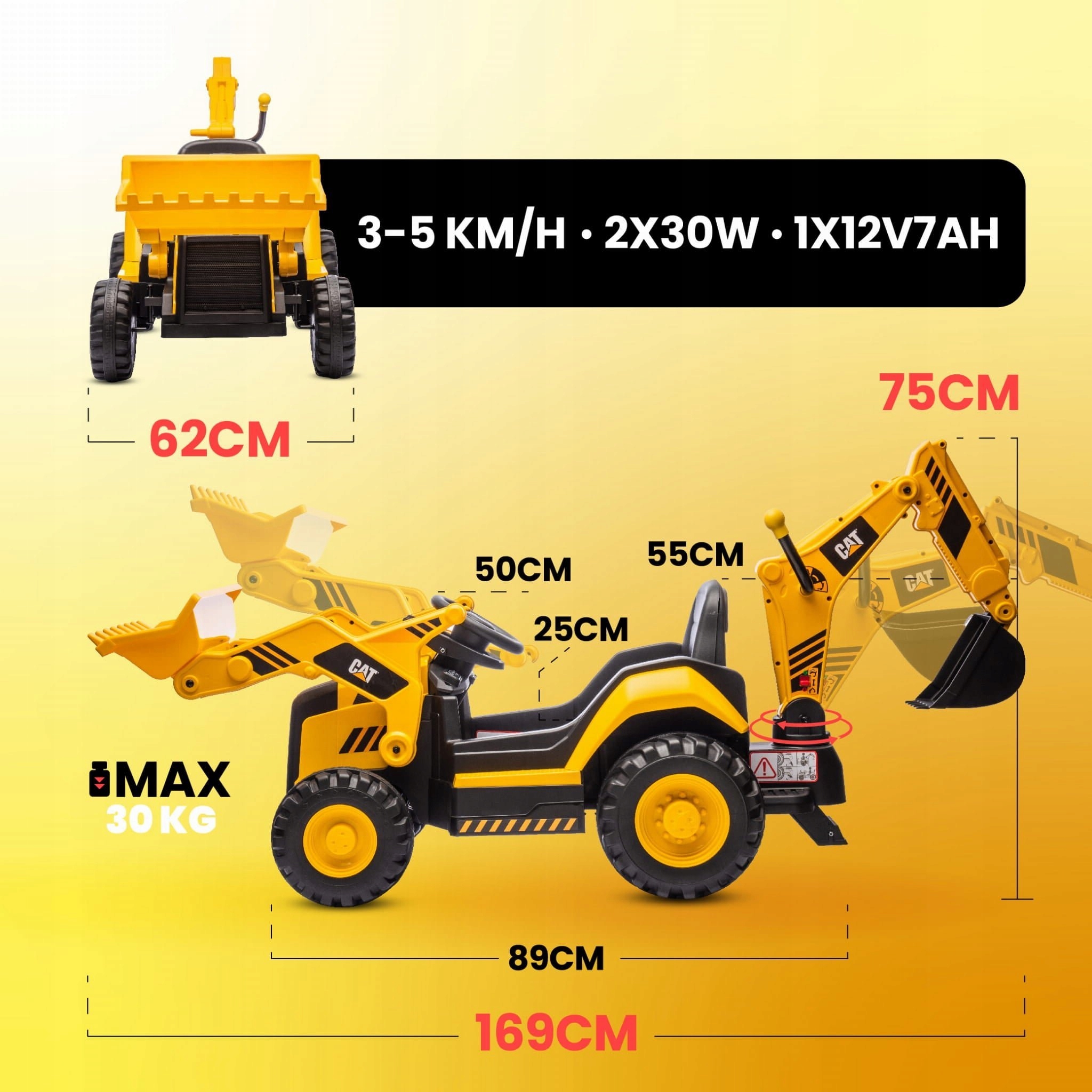 Mocny silnik 2×30W i akumulator 12V 7Ah gwarantują płynną jazdę oraz długą zabawę na jednym ładowaniu. Solidne koła i wygodne siedzisko z tworzywa sztucznego są łatwe w pielęgnacji i zapewniają stabilność.