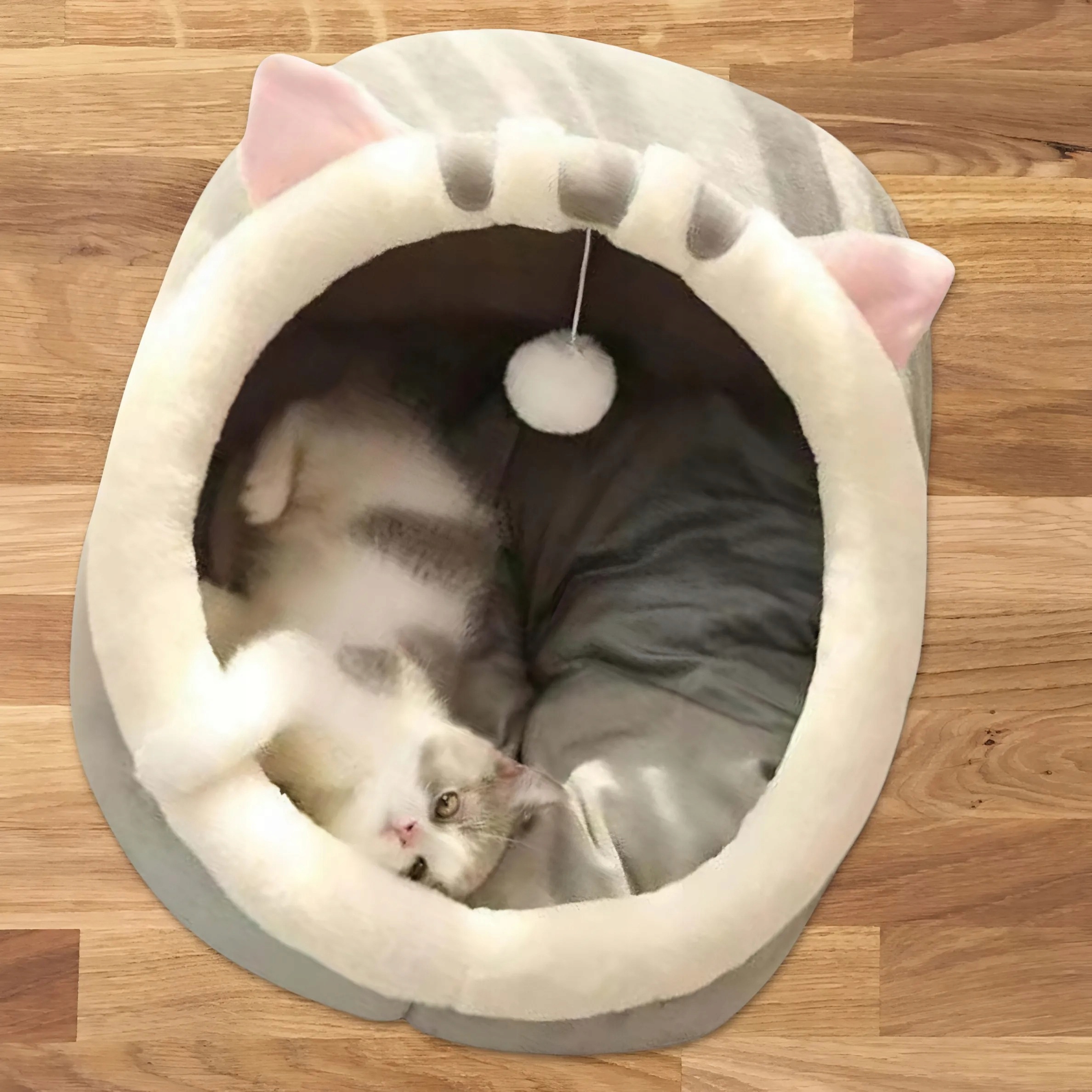 Wewnątrz domku znajduje się miękka poduszka wyścielająca jego wnętrze, która dodaje jeszcze większego komfortu dla Twojego kota. Poduszkę można wyjąć i wykorzystać także poza legowiskiem, jak również wyprać ręcznie.