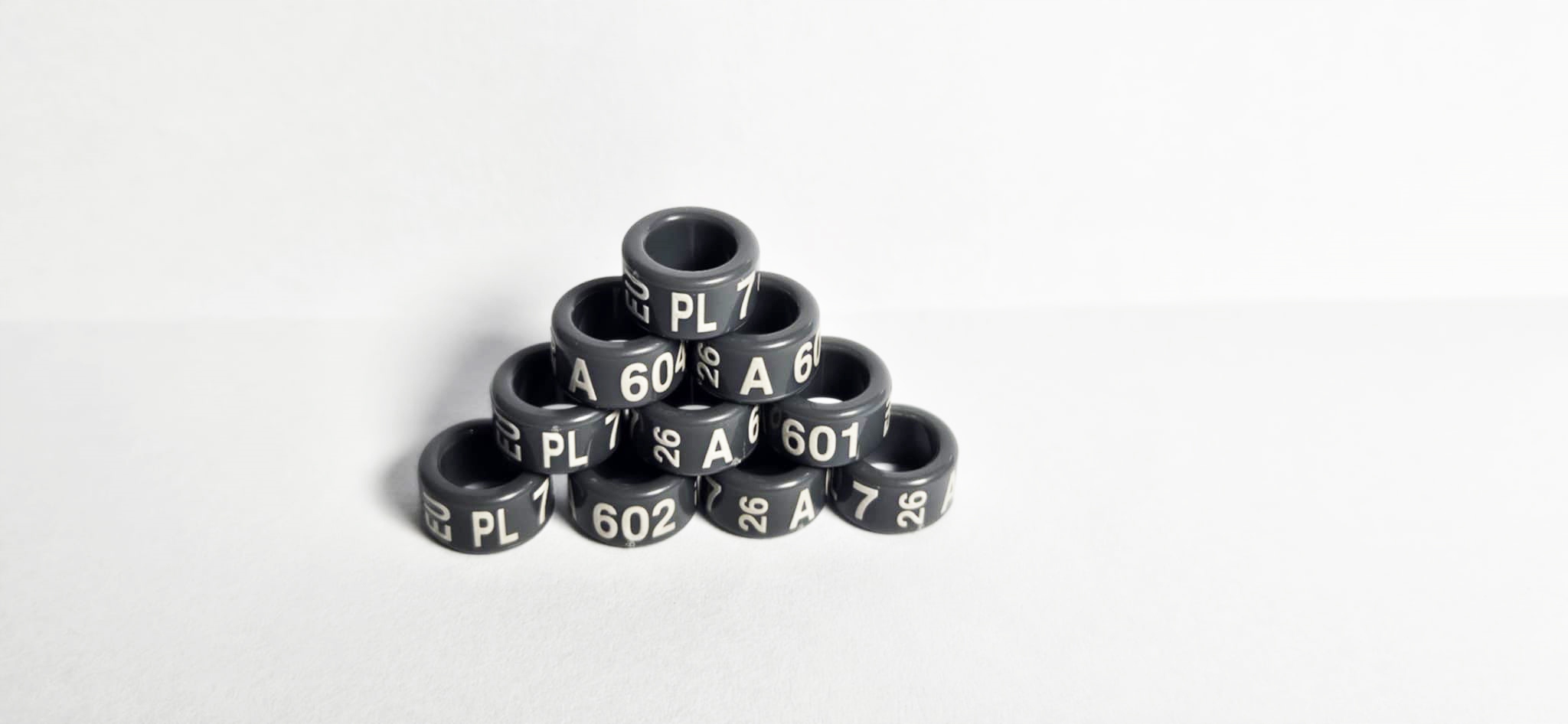 Obrączki wykonane z całkowicie z tworzywa sztucznego, odpornego na promieniowanie UV oraz zakres temperatur od -50°C do +200°C. Laserowe grawerowanie nadaje wysoki kontrast nadruku oraz zapewnia wysoką odporność na ścieranie.