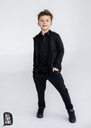 Czarna marynarka dla fanów sportowej elegancji. Modna marynarka chłopięca powstała w Polsce przez markę All For Kids z dzianiny dresowej, przez co jest przyjemna w kontakcie ze skórą i komfortowa w noszeniu.