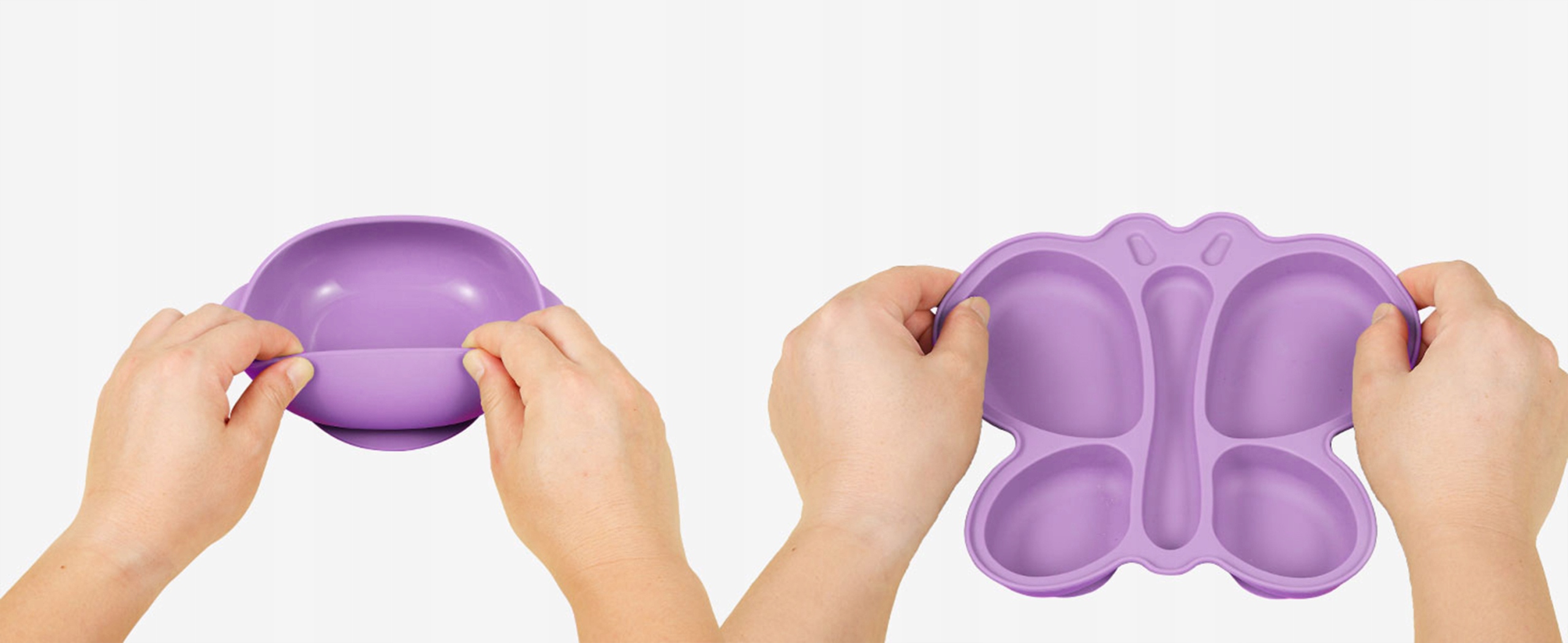 Miseczka oraz talerz zostały wyposażone w specjalne przyssawki na spodzie, które zapewniają im stabilną przyczepność do powierzchni. Dzięki temu Twoje dziecko nie zrzuci na podłogę swojej porcji posiłku.