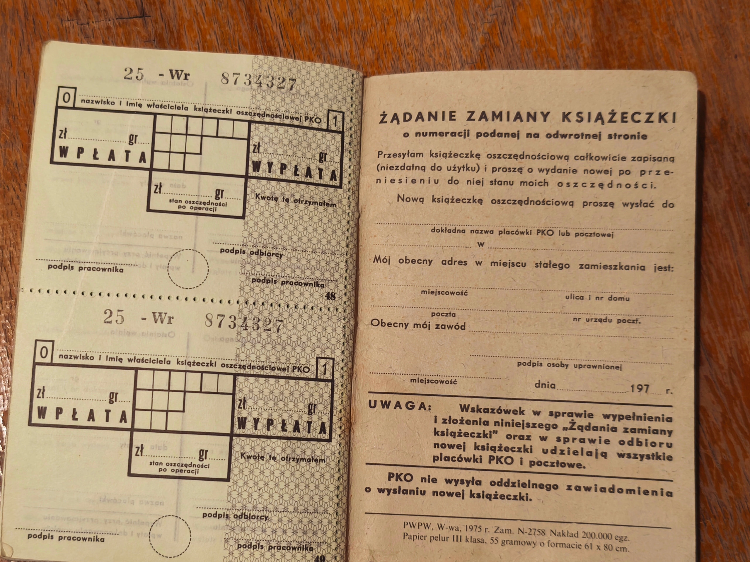 Przedmiotem sprzedaży jest stara, wydana w 1977 roku Książeczka Oszczędnościowa PKO.