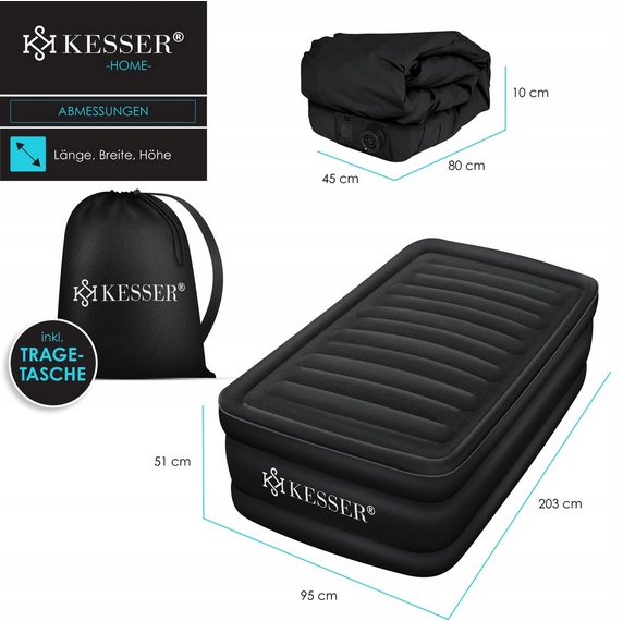 Materac samopompujący jednoosobowy Kesser to wygodny i łatwy w montażu materac, który zapewni Ci komfortowy sen w każdych warunkach. Jednoosobowy model zapewni Ci prywatność i niezależność, a czarny kolor dodaje elegancji. W zestawie znajdziesz pokrowiec oraz pompkę, dzięki czemu użytkowanie produktu jest jeszcze wygodniejsze. Materac samopompujący jednoosobowy Kesser to rozwiązanie dla osób, które cenią sobie jakość i wygodę.