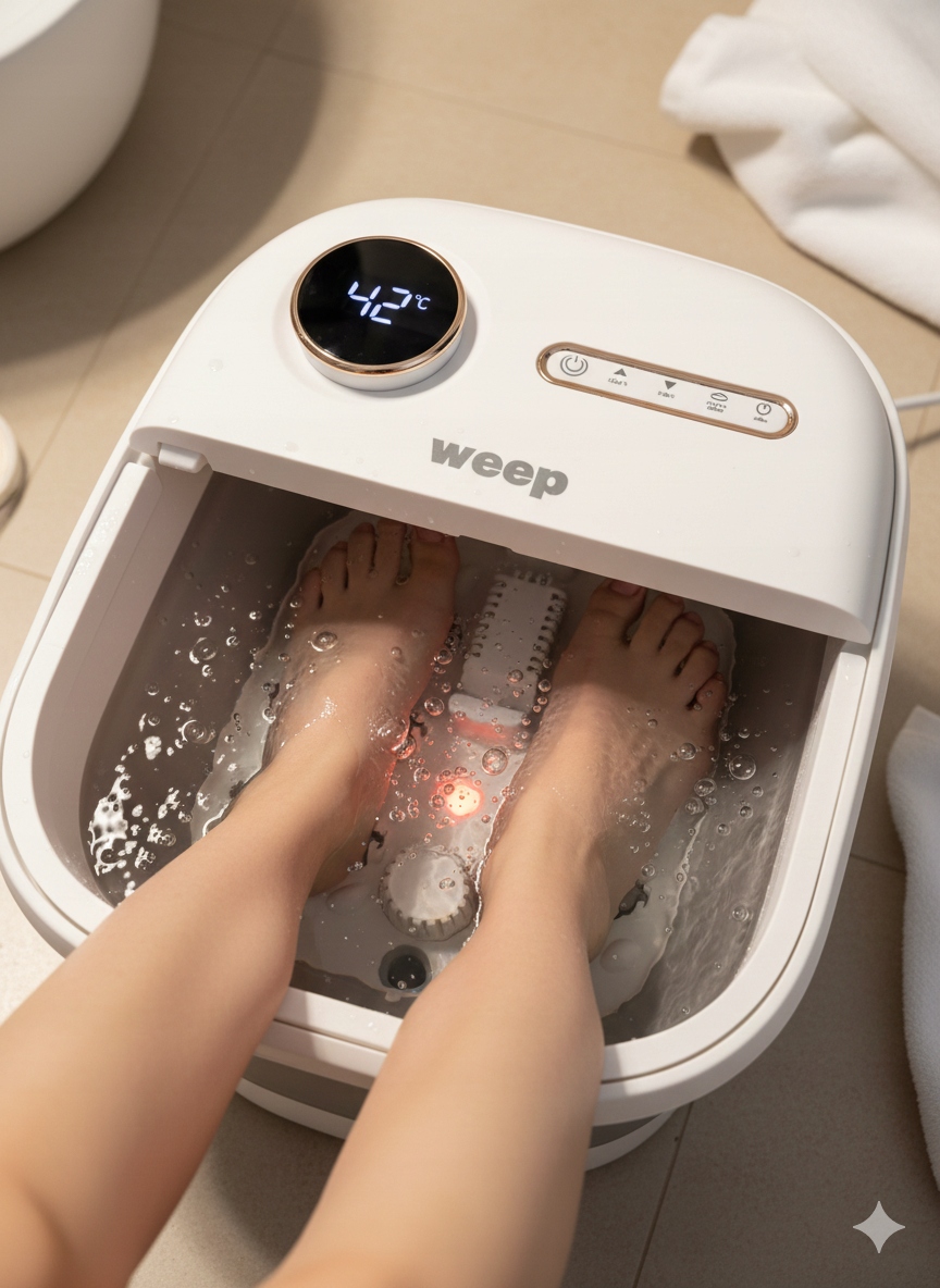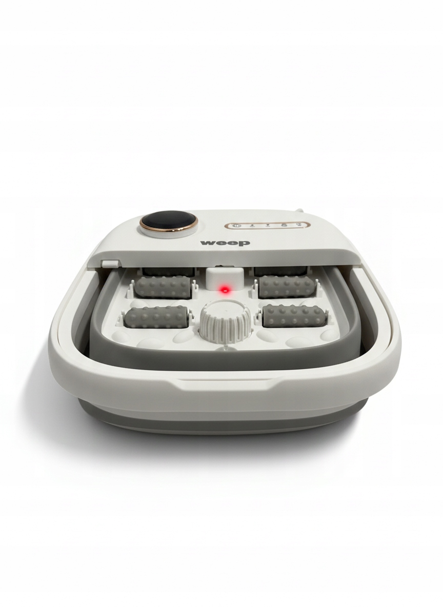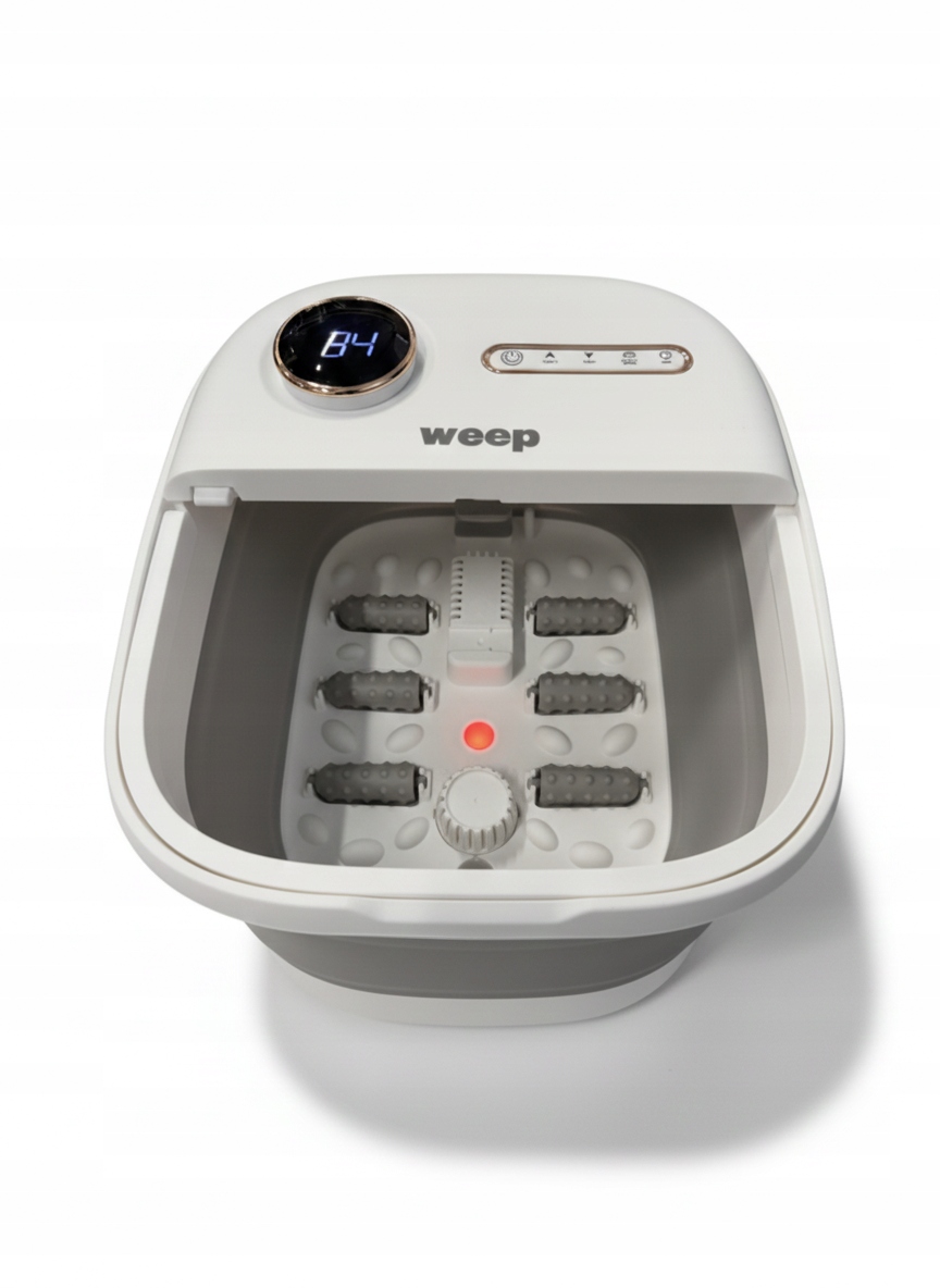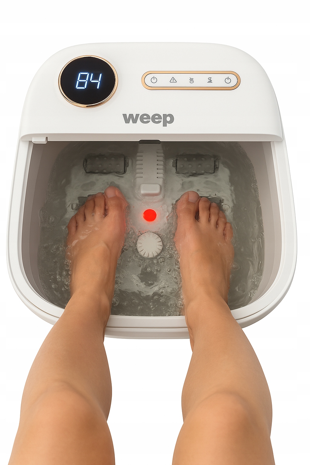 Weep T5 Pro to zaawansowany masażer wodny zaprojektowany dla osób poszukujących skutecznego sposobu na regenerację, poprawę krążenia i głęboki relaks stóp. Funkcje masażu rolkowego, podgrzewania, hydromasażu, terapii czerwonym światłem oraz kompaktowa, składana konstrukcja sprawiają, że urządzenie oferuje komfort na poziomie profesjonalnego SPA – w warunkach domowych.