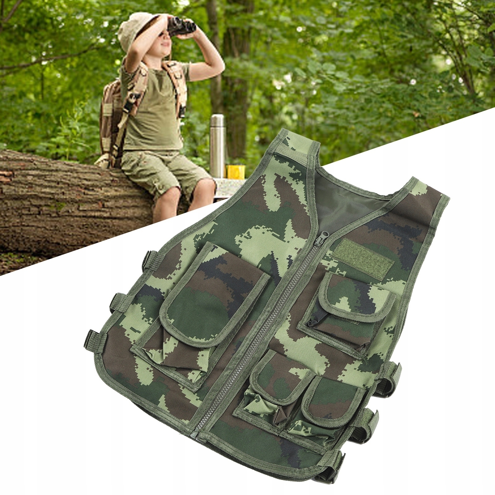 Kamizelka strzelająca z kieszeniami na zamek byskawiczny Regulowana kamizelka kamuflażowa dla dzieci Kolarstwo na świeżym powietrzu Piesze wycieczki Wspinaczka górska