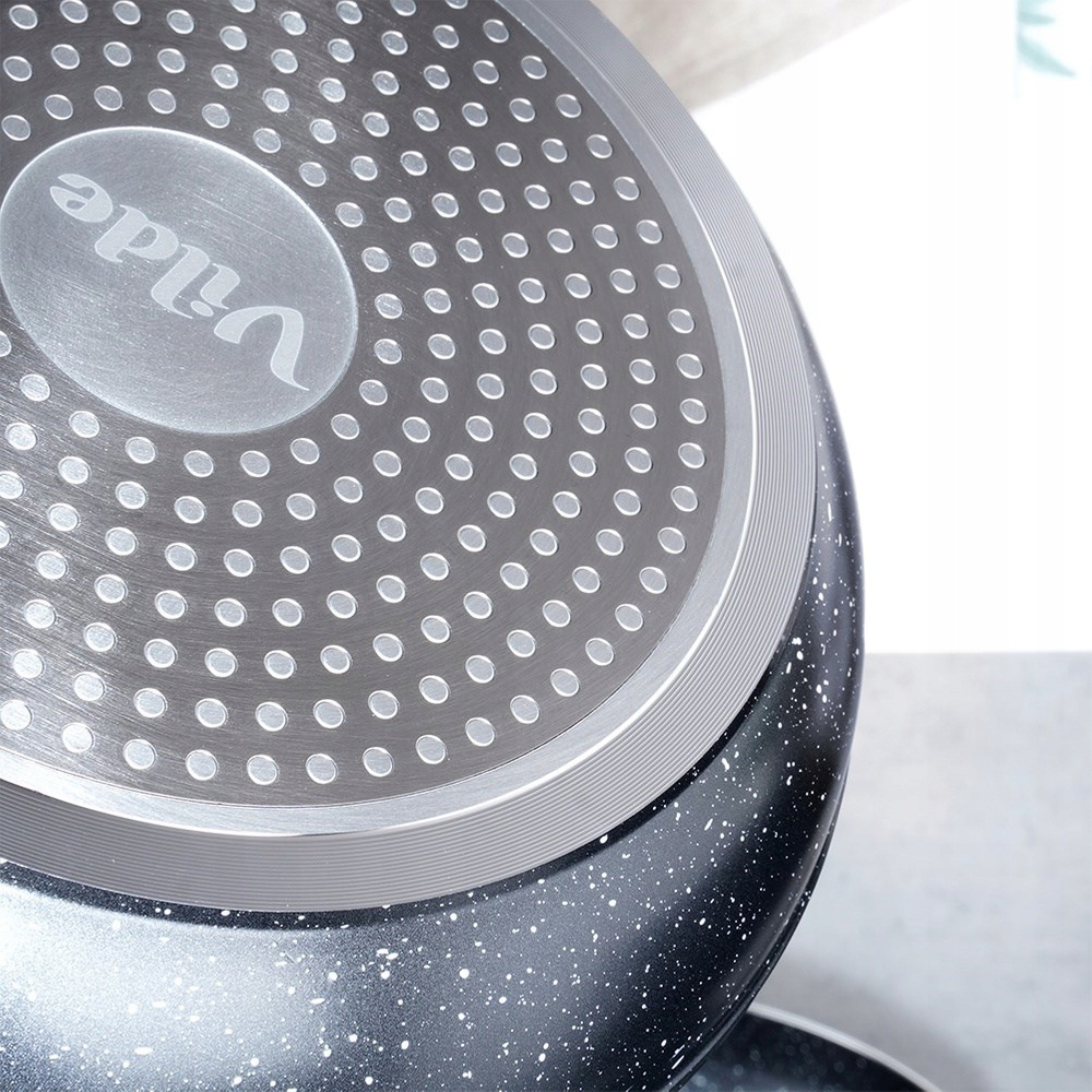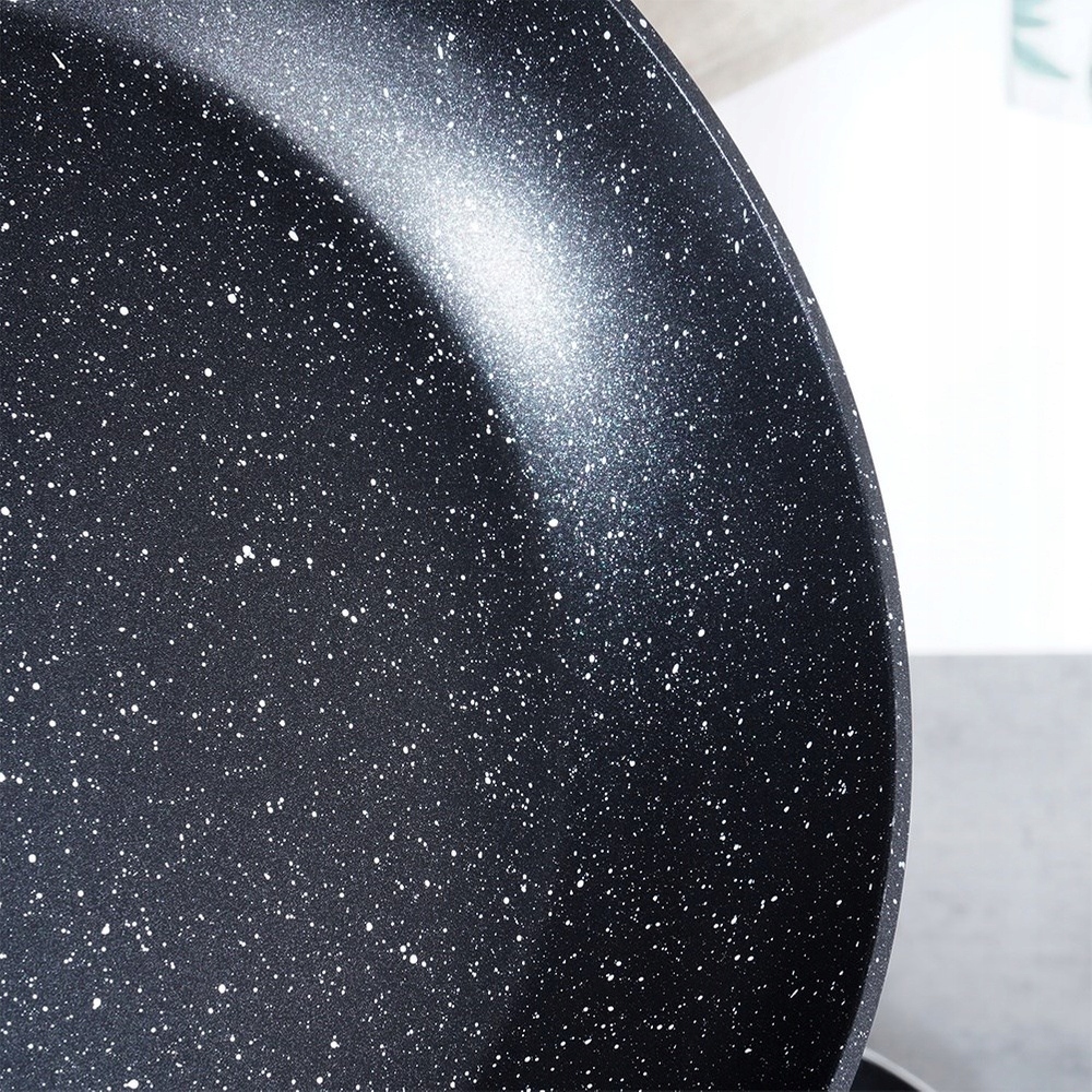 ✅ Nieprzywierająca powłoka granitowa - Patelnia wykonana z aluminium z nieprzywierającą powłoką granitową w czarnym kolorze. Powierzchnia nieprzywierająca umożliwia przygotowywanie zdrowych i smacznych posiłków z minimalną ilością tłuszczu. Wyposażona w uchwyt wykonany z najwyższej jakości, wytrzymałego tworzywa imitującego drewno.