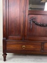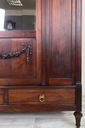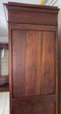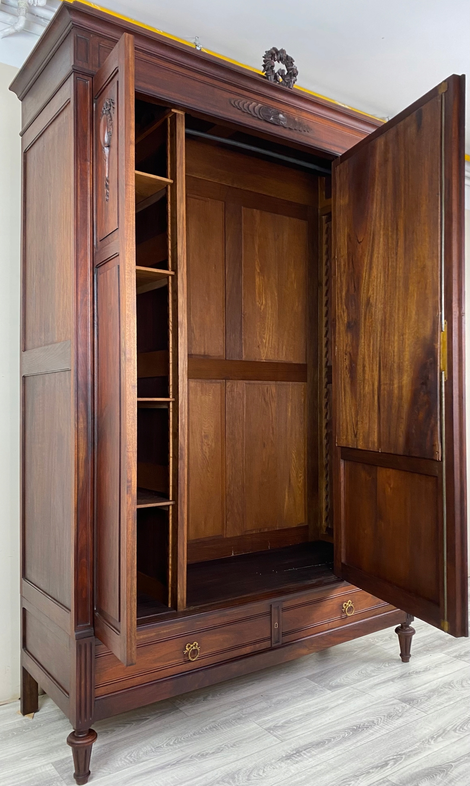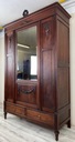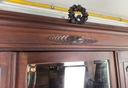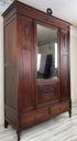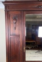 To piękny, solidny mebel o wyraźnie klasycznym charakterze. Szafa jest wykonana z ciemnego, szlachetnego drewna – wygląda na orzech lub mahoniową odmianę, z ładnym, ciepłym usłojeniem, przywieziony z Francji.