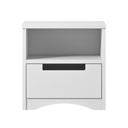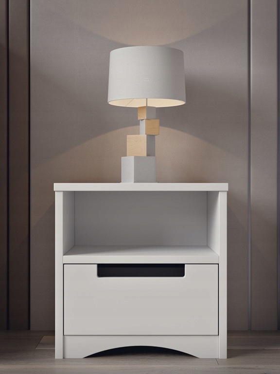 Szafka nocna w kolorze biały to niezbędny element przy łóżku. Wyposażona w praktyczną szufladę pomieści wszystkie drobiazgi, a solidny blat z płyta wiórowa / mdf zapewni stabilne miejsce na lampkę czy książkę. Minimalistyczny design doskonale komponuje się z nowoczesnymi wnętrzami.
