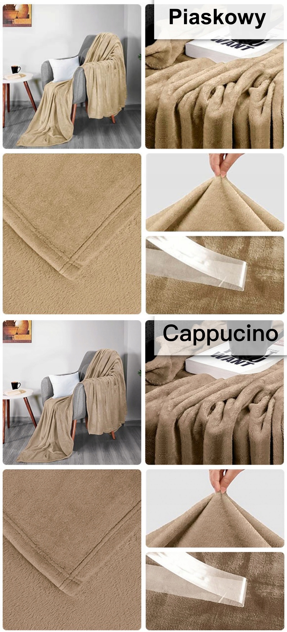 ➡️ Koc gładki o jednolitej strukturze o gramaturze ok 190-220 g/m2