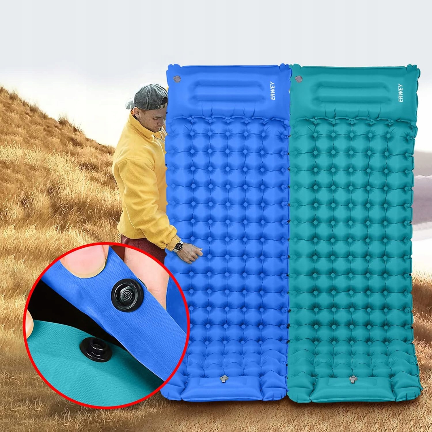 nadmuchiwana podkładka do spania z podwójnym zaworem powietrza, wbudowany zawór sprężonego powietrza, bez pompy powietrza, można ją łatwo zakończyć naciskiem stopy ręcznej i może szybko napompować spuszczanie powietrza
