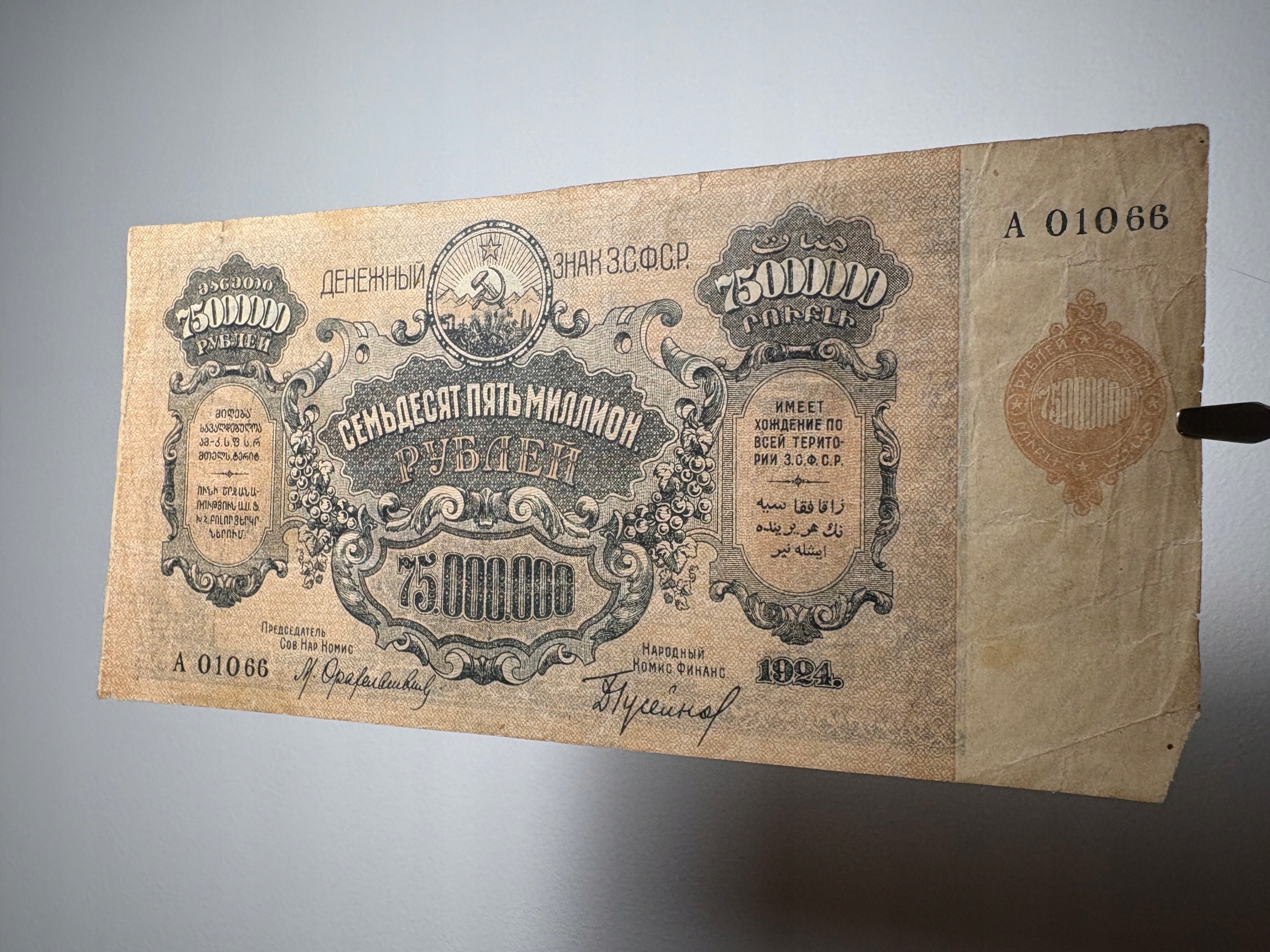 75 000 000 rubli 1924 RFSRR Seria A01066