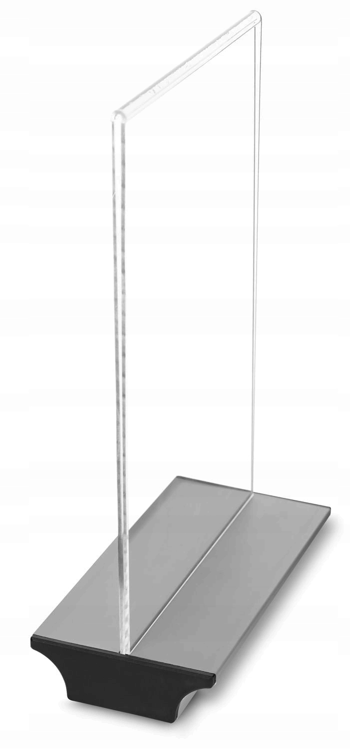Stojak wykonano z wysokiej jakości, przezroczystego akrylu, który zapewnia znakomitą widoczność treści oraz odporność na zarysowania. Lekka, nowoczesna podstawa gwarantuje stabilność, dzięki czemu produkt świetnie sprawdza się zarówno na ladzie, jak i na stołach czy biurkach.
