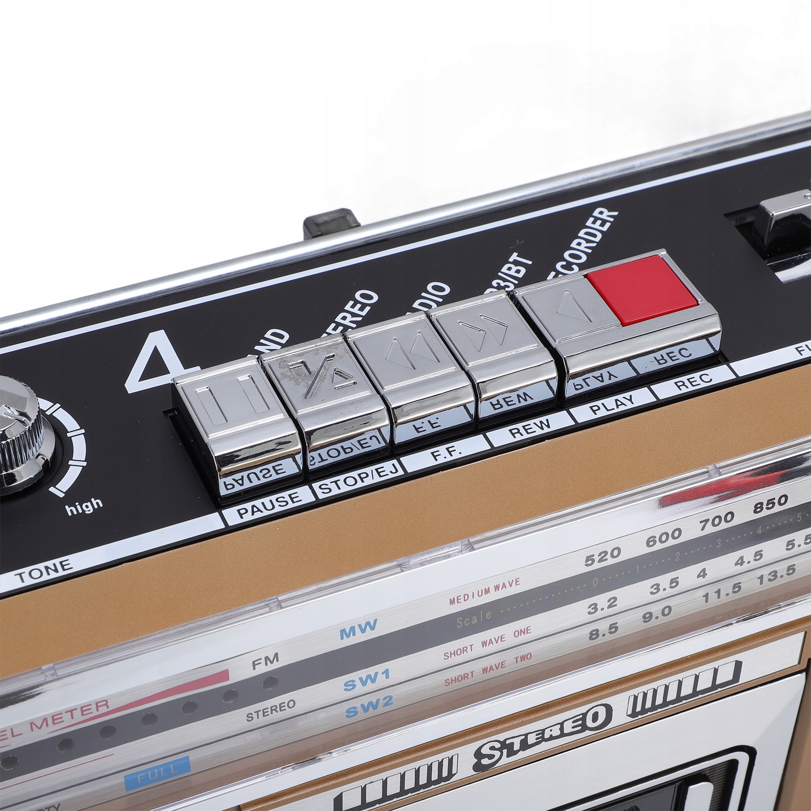 2. Wszechstronne możliwości radia: Ciesz się ulubionymi lokalnymi stacjami nadawczymi dzięki temu odtwarzaczowi kasetowemu, wyposażonemu w pasma radiowe FM, MW, SW1 i SW2 oraz wysuwaną antenę zapewniającą lepszy odbiór sygnału.