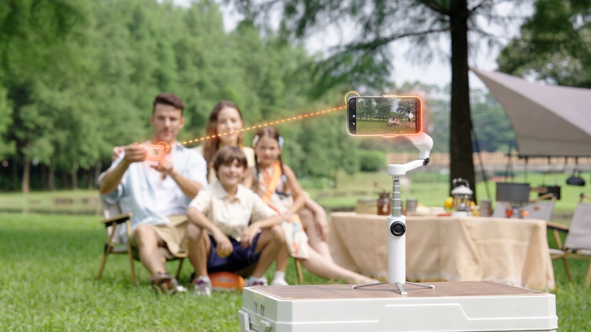🧭 3-osiowy stabilizator + 360° Infinite Pan — płynne obroty i perfekcyjna stabilizacja.