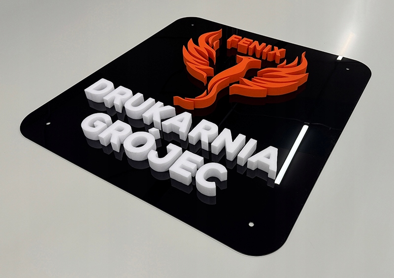 Zajmujemy się również produkcją tablic oraz szyldów na podstawie z plexi lub dibondu. Realizacje tego typu montowane są do ściany za pomocą ozdobnych dystansów montażowych lub bezpośrednio do ściany za pomocą kleju montażowego.
