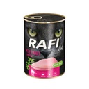 mięso i produkty pochodzenia zwierzęcego 65% (mięso z indyka 4%), oleje i tłuszcze (olej lniany 0,6%, olej z łososia 0,5%), substancje mineralne, tymianek suszony 0,01%.