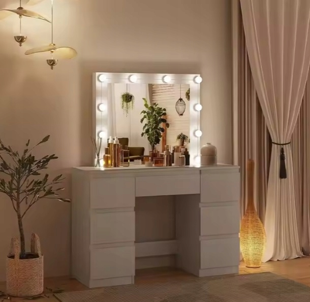 Toaletka z podświetlanym lustrem to najnowsze rozwiązanie na rynku. Świetnie nadaje się jako uzupełnienie garderoby lub pokoju małej księżniczki. Jest funkcjonalna - zapewnia możliwość schowania części biżuterii w specjalnych szufladkach.