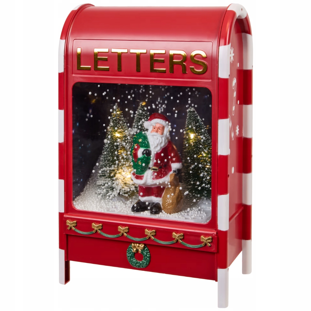 Całość tworzy przytulną, dekoracyjną skrzynkę na listy — idealną by wprowadzić bożonarodzeniowy klimat do salonu, przedpokoju albo przy drzwiach wejściowych. Światło i dźwięk budują atmosferę świąteczną, która sprawi, że dekoracja stanie się sercem dekoracji domu.