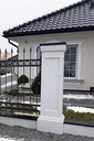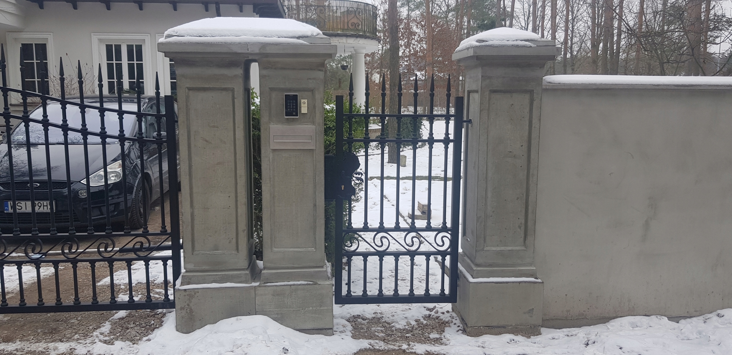 Dzięki temu że elementy, czyli słupy i murki dolne są jednorodną bryłą, montaż jest bardzo szybki i nikomu nie powinien sprawić problemu, w porównaniu np. z elementami modułowymi, gdzie każdy element należy oddzielnie zalewać i spoinować. Wystarczy jedynie wylać miejscowe stopy . Na tych że stopach ustawiamy słupy i murki, zalewając jedynie środek słupka, łączenia należy zasylikonować uszczelniaczem dekarskim, a daszki przykleić na klej mrozoodporny