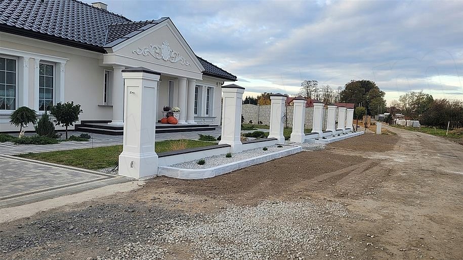 Elementy ogrodzenia wykonane są w technologii odlewu betonowego wzmocnionego zbrojeniem, w postaci siatki stalowej o grubości 3mm, grubość ścianek poszczególnych elementów wynosi ok 4 cm.