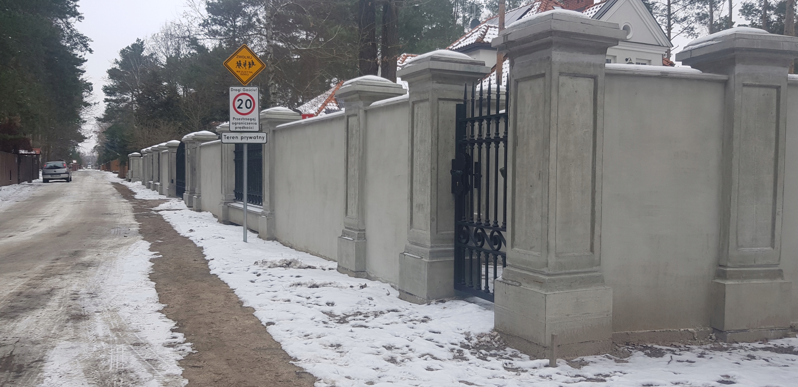 System ogrodzeń dworkowych, w postaci jednorodnych odlewów z betonu, o niespotykanej gładkości, a ponadto wodo i mrozoodpornej mieszanki zaprojektowanej w laboratorium firmy SCHOMBURG, klasy C – 30/37 (B – 37), spełniającej normę PN-EN 206-9 :2010 dodatkowo zbrojoną siatką stalową o gr. 3 mm.