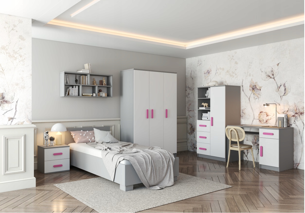 Stolik można wyposażyć w dodatkowe meble z serii Smyk, tworząc świetne miejsce do przechowywania w pokoju dziecięcym lub młodzieżowym.