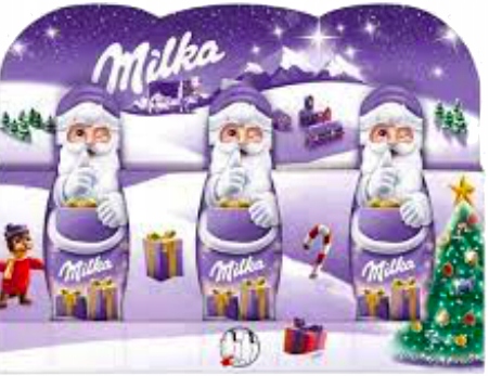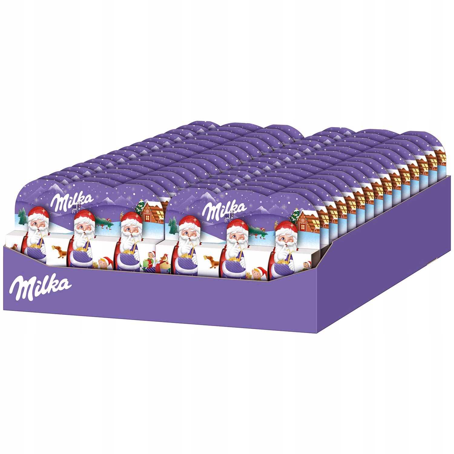✅ Małe Mikołaje z czekolady Milka po 15 gramów w opakowaniu po 3 sztuki.