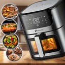 Intensywny, równomierny obieg gorącego powietrza otacza potrawy z każdej strony, gwarantując perfekcyjne wypieczenie bez oleju.
