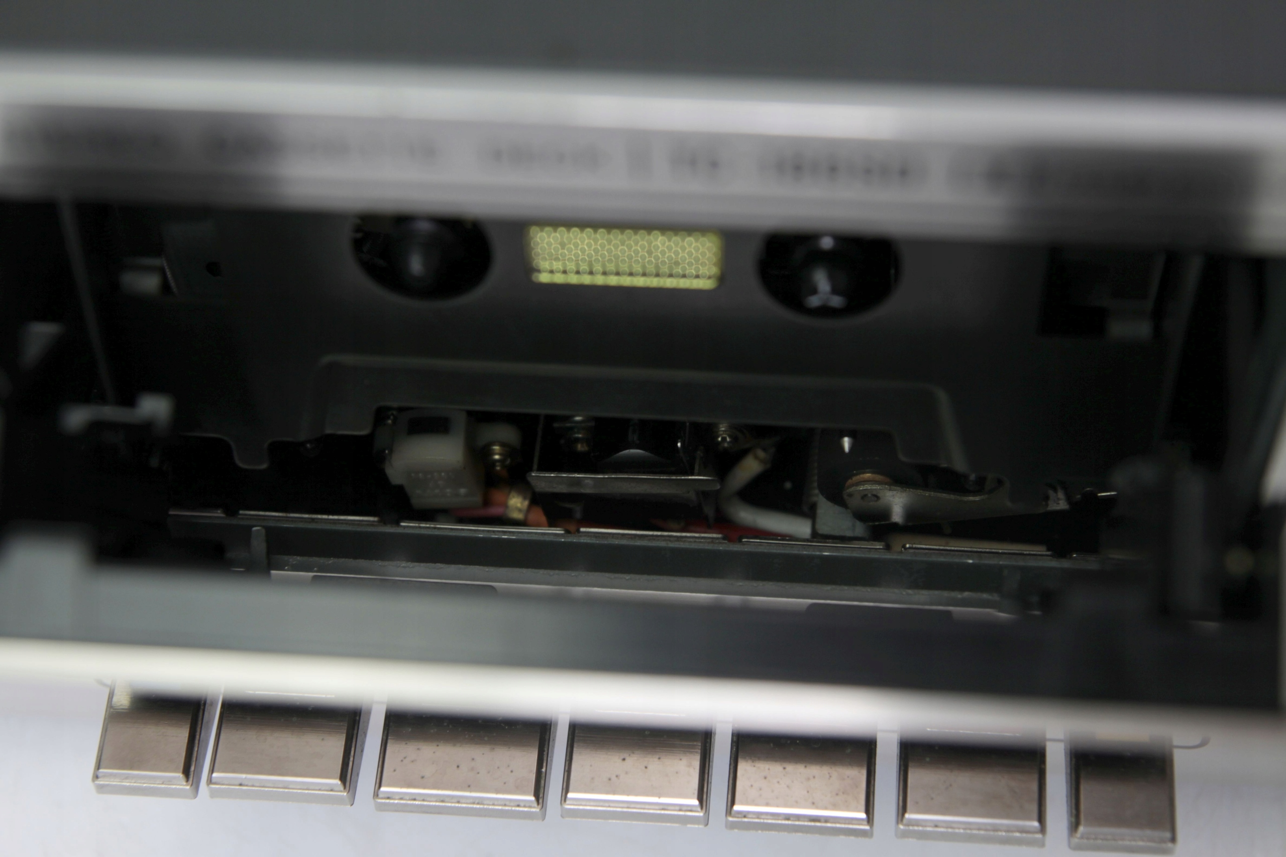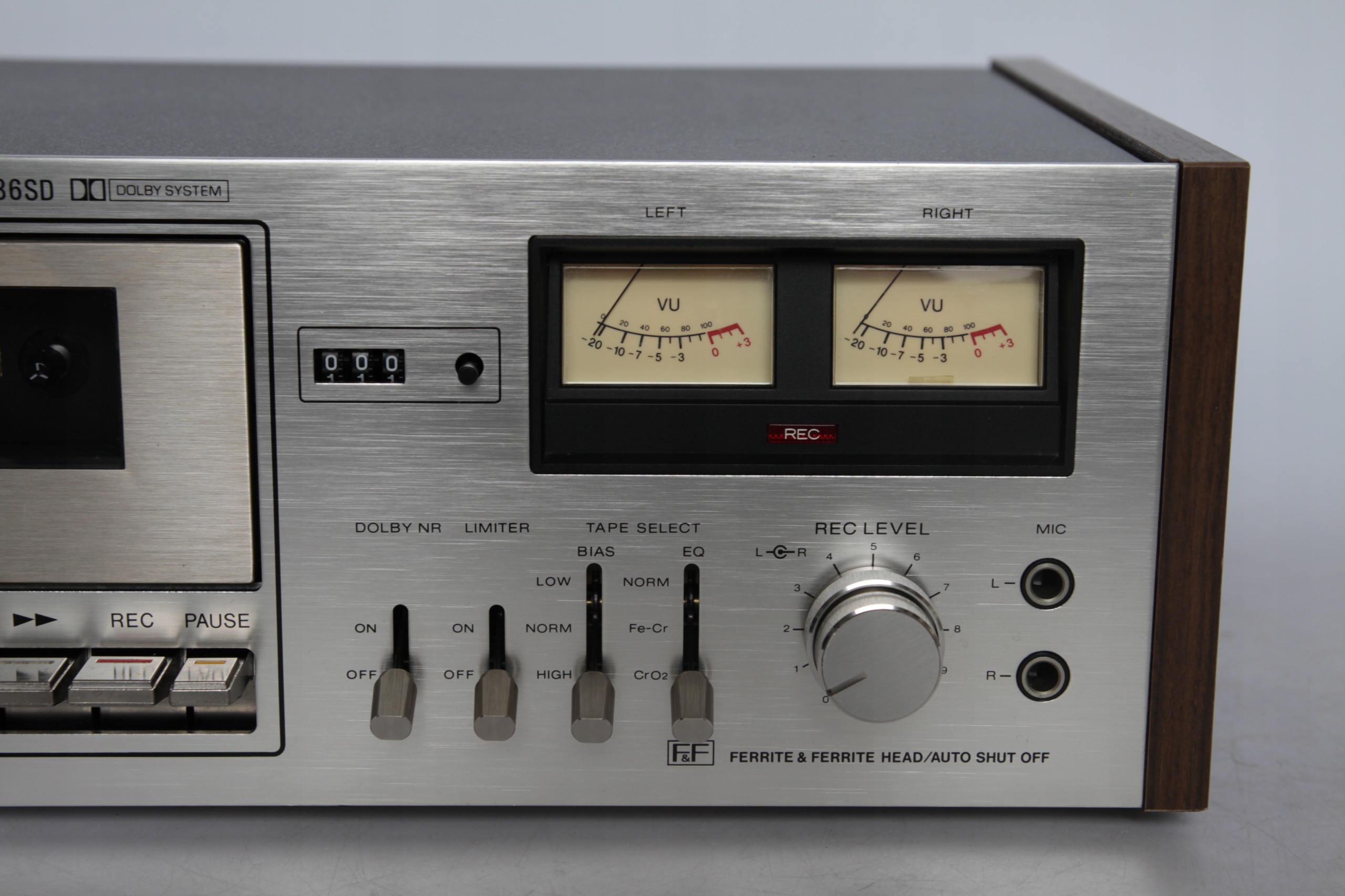 Technicznie: w pełni sprawny, odtwarza, przewija, nagrywa, mierniki wyskalowania działają poprawnie, podświetlenie mierników sprawne, pomarańczowe.