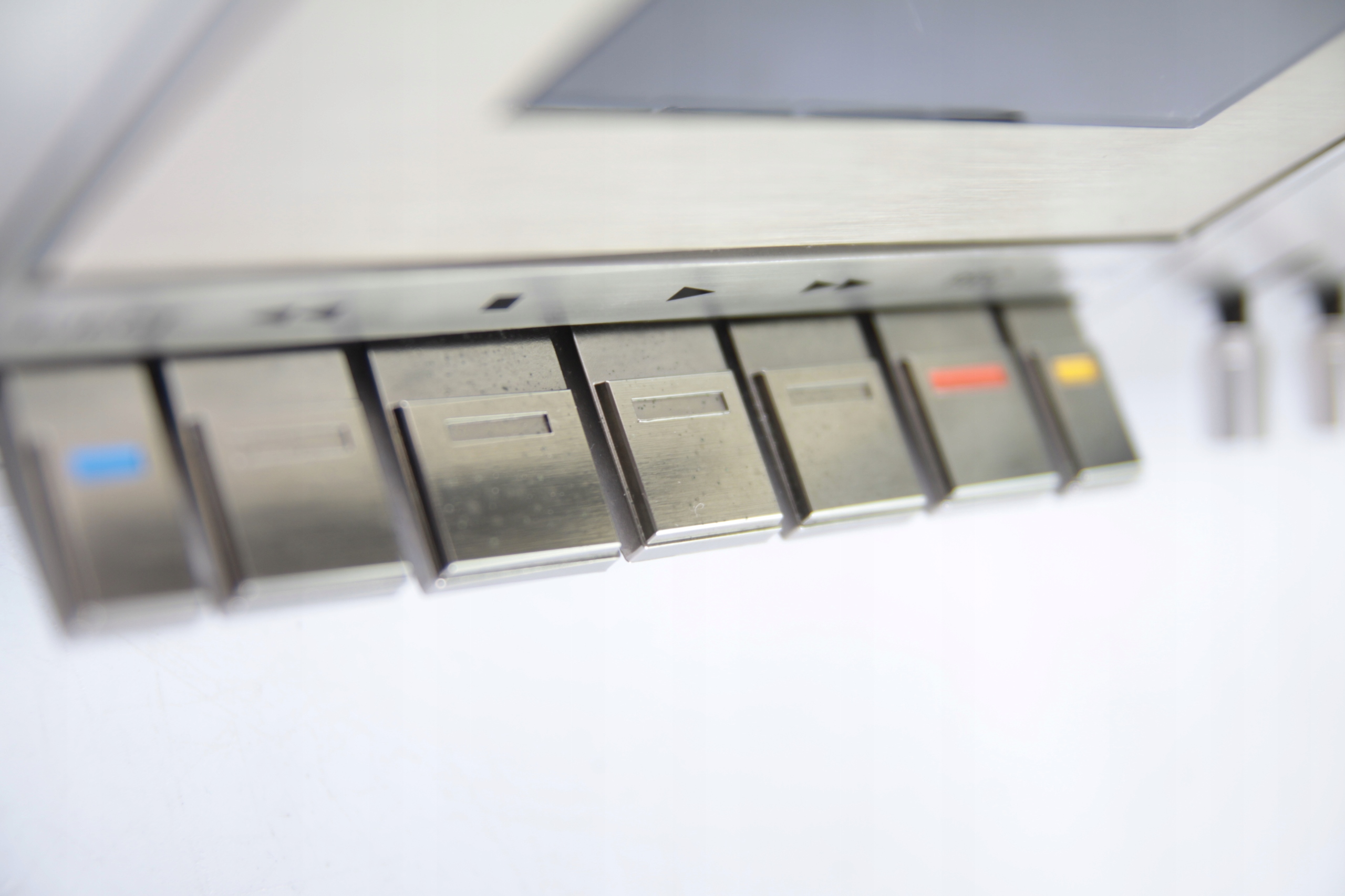 Wizualnie: stan bardzo dobry, niewielkie rysy na obudowie oraz przebarwienie, panel frontowy jeden ślad między kieszenią a górą panela.Wszystkie napisy w stanie wzorowym, na drewnianych elementach tylne dolne rogi posiadają ślady.