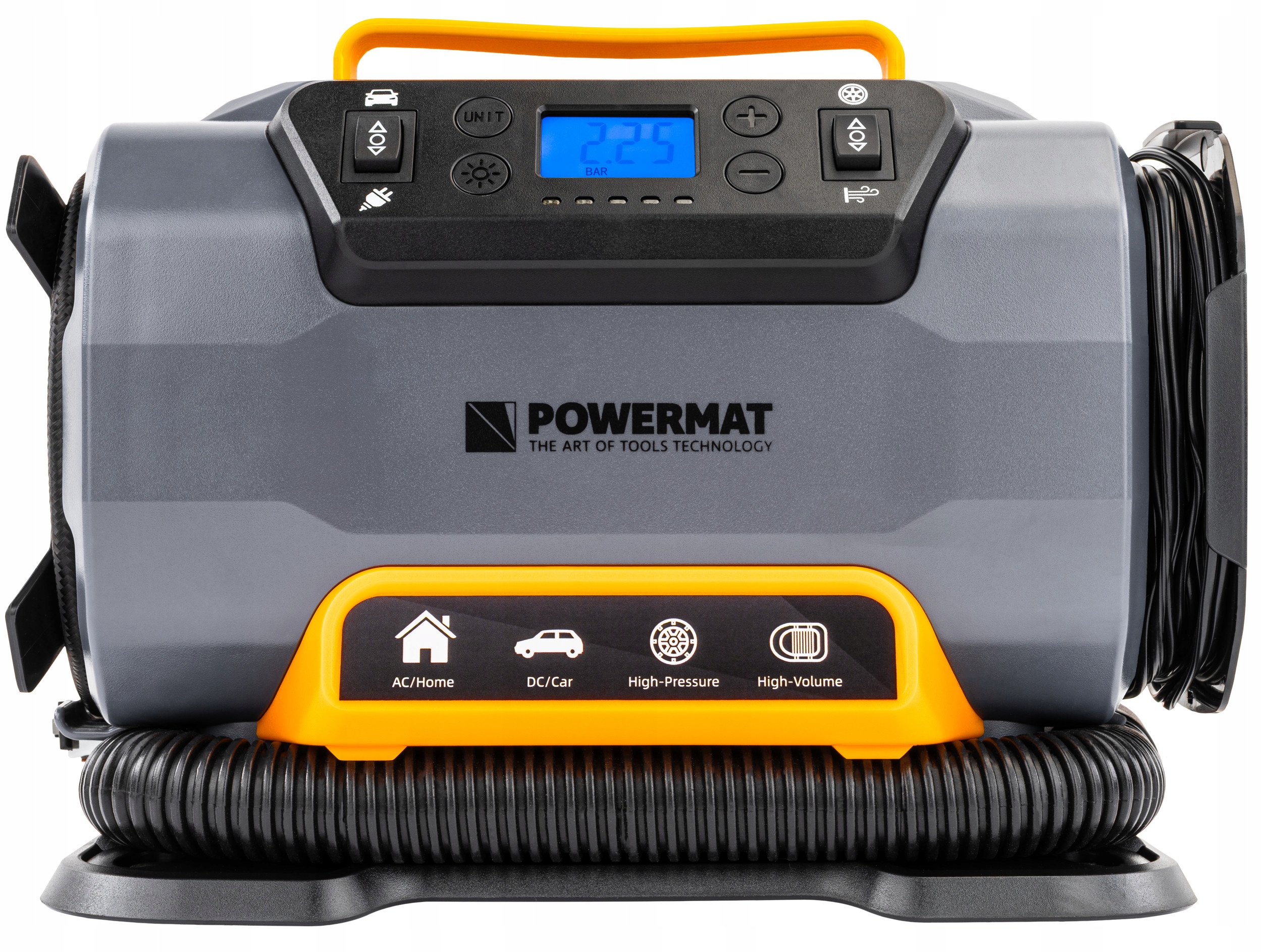 Wybierając kompresor Powermat, zyskujesz realną moc, ciśnienie do 10 bar (150 PSI) oraz wydajność 35 l/min, które przekładają się na szybkie pompowanie w praktycznych zastosowaniach.
