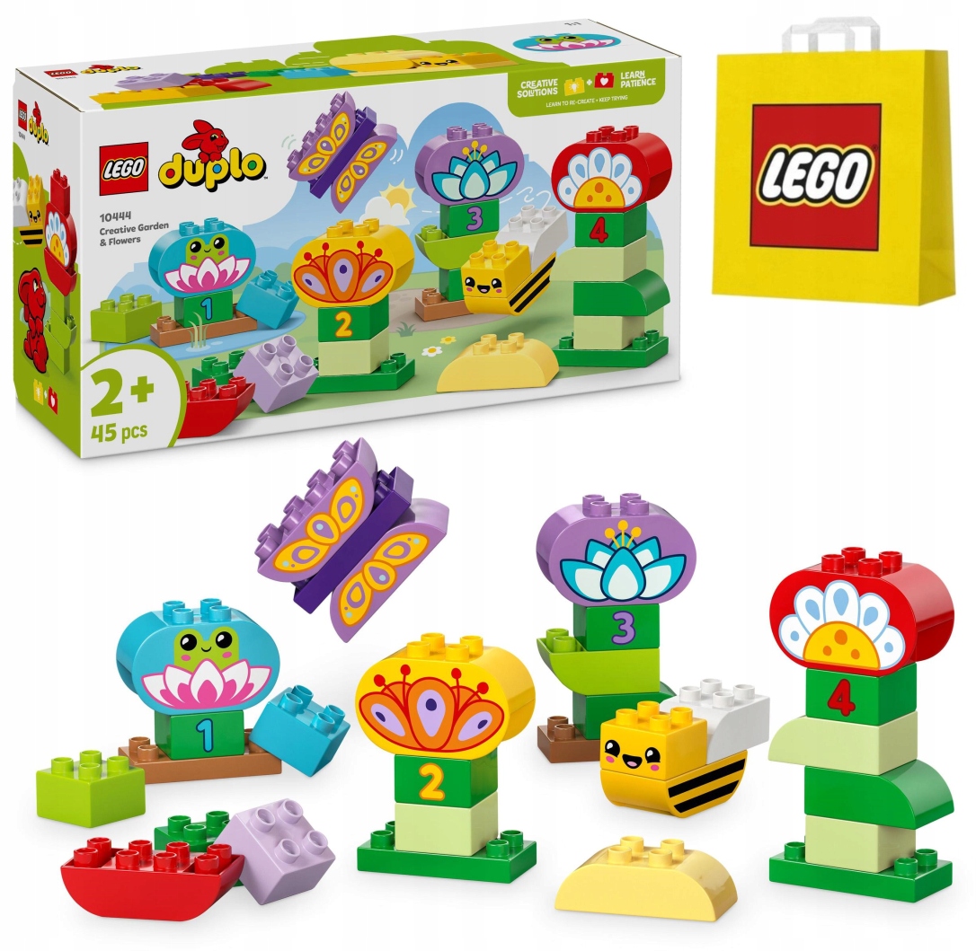DUPLO® LEGO DUPLO Town Kreatywny Ogród i Kwiaty, Zabawka dla Dziecka do Układania w Stosy z 3 Figurkami Zwierząt, Rozwijająca Motorykę Małą, Prezent dla Malucha, dla 2-latka, Dziewczynki i Chłopca, 10444 klocki tygrys żyrafa farma rolnik ptaki dżungla małpa safari wilk lis ryba las chłopiec dziewczynka przedszkole 18 miesięcy 3 4 5 siostrzenica siostrzeniec syn figurki rodzina córka przedszkole rozwój aktywność szkoła kreatywny poczęstunek Kreatywny ogród i kwiaty LEGO® DUPLO® Town Kreatywny ogród i kwiaty Zabawka LEGO® DUPLO® Town Kreatywny ogród i kwiaty 10444 Zabawka edukacyjna pomaga dzieciom w wieku przedszkolnym cieszyć się kreatywną zabawą i rozwijać koordynację podczas budowania kolorowego ogrodu. Wesprzyj naukę i koordynację wzrokowo-ruchową dziecka Pomóż maluchowi rozwinąć kreatywność i koordynację dzięki zestawowi LEGO® DUPLO® Town Kreatywny ogród i kwiaty (10444). Ten zestaw konstrukcyjny zawiera 45 klocków do zbudowania kolorowych kwiatów i uroczych zwierząt oraz owadów LEGO DUPLO, dzięki czemu dzieci stworzą stale zmieniającą się piękną scenkę.Ta edukacyjna zabawka pobudza wyobraźnię dzieci, pomagając im odtworzyć otaczający je świat. Zestaw z 45 elementami zachęca je do zbudowania ogrodu, rozpoznawania liczb, nauki kolorów oraz rozwoju umiejętności językowych i motorycznych. Podczas zabawy ćwiczą także wytrwałość podczas układania klocków, aby zbudować stworzenia i kwiaty.Szukasz prezentu dla przedszkolaka? Ta kreatywna zabawka zawiera mnóstwo klocków, dzięki czemu maluchy mają swobodę twórczą, aby zbudować ogród z motylkiem, pszczołą i żabą według własnego pomysłu, a przy okazji rozwijać swoje umiejętności! Pomóż swojemu maluchowi odtworzyć otaczający go świat, budując z nim piękny ogród z klocków. W zestawie znajdują się elementy z motylem, pszczołą i żabą, które pomogą mu nauczyć się nazw tych przyjaznych ogrodowych stworzeń. Ten zestaw z 45 klockami oferuje wiele sposobów budowania, dzięki czemu dzieci mogą próbować, aż doprowadzą do perfekcji dzieło przypominające im ulubiony park lub ogród! • Zestaw dla dzieci z ogrodem do zbudowania — zestaw LEGO® DUPLO® Town Kreatywny ogród i kwiaty zachęca do budowania i kreatywnej zabawy • Nauka liczb — klocki przedstawiają liczby, kwiaty i zwierzęta, dzięki czemu dzieci mogą odtwarzać i porównywać je z otaczającym światem • Trzy figurki zwierząt LEGO® DUPLO® — ta zabawka dla dzieci w wieku przedszkolnym zawiera trzy figurki: żabę, motyla i pszczołę • Zabawka edukacyjna — maluchy wykorzystują umiejętności motoryczne, łącząc klocki, aby odtworzyć otaczający je świat.