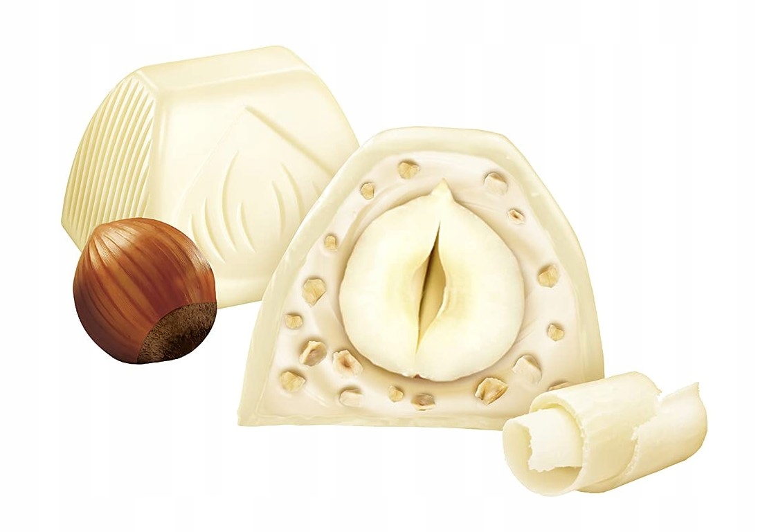 ✅ Delikatne praliny orzechowe składają się z grubej warstwy białej czekolady, która otoczona jest delikatnym kremem orzechowym.