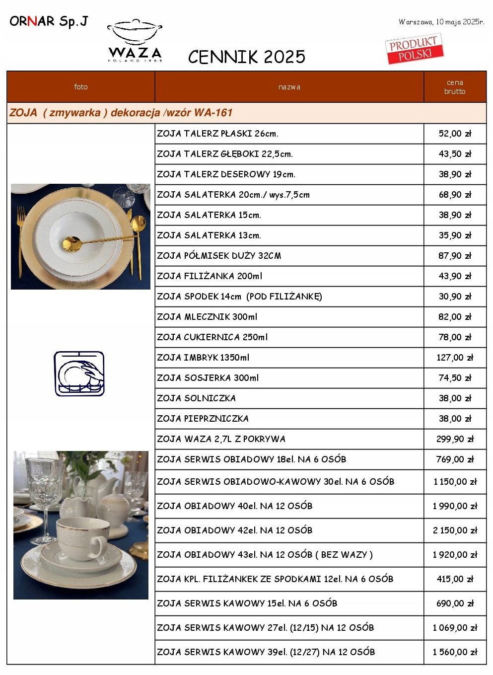 Zestaw jest fabrycznie nowy i został wyprodukowany w Polsce w I gatunku przez Waza Przygodzice.